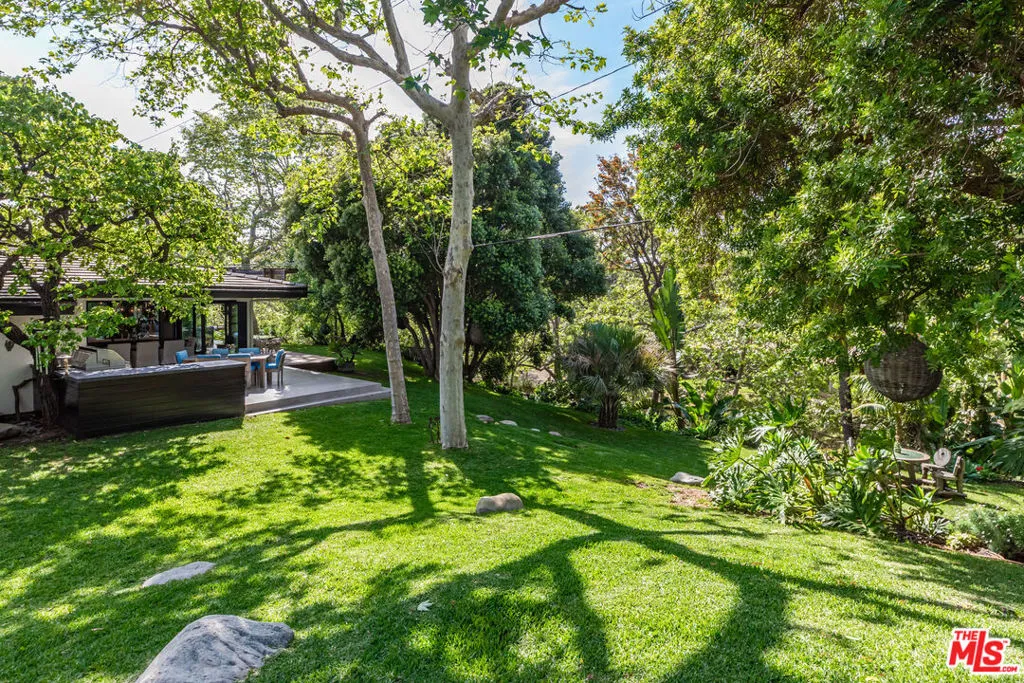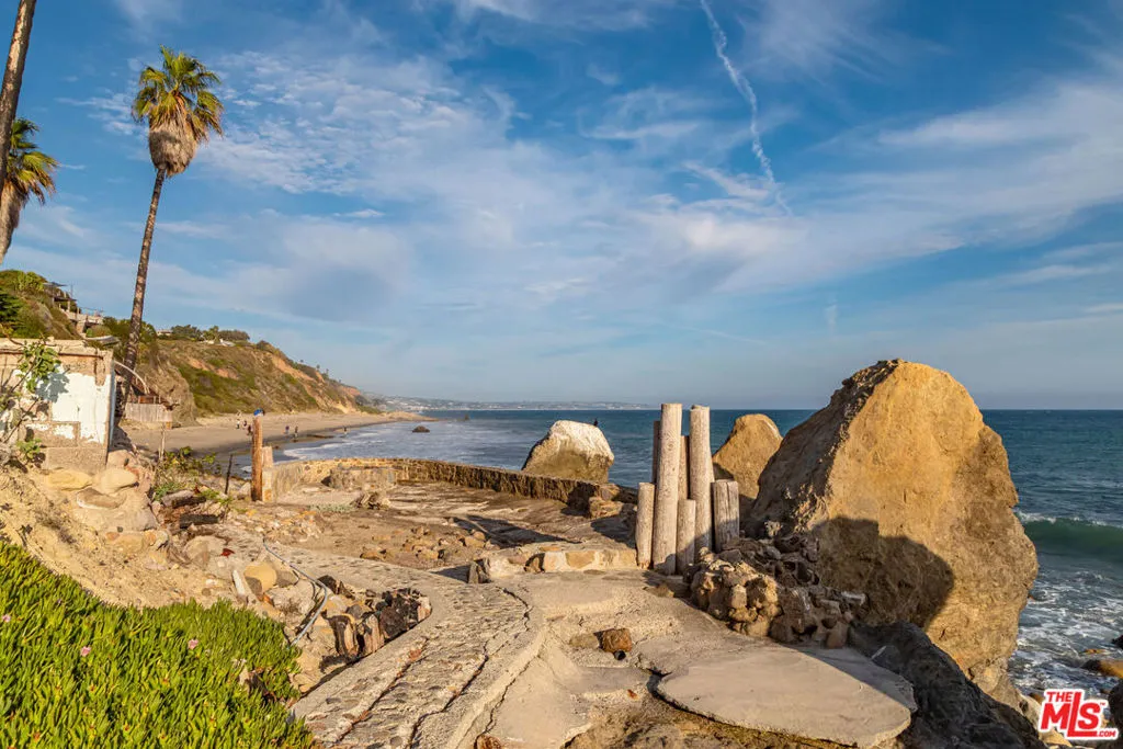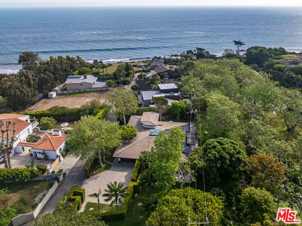 Discover a private coastal paradise along Malibu's iconic Encinal Bluffs. Set behind the gates on a quiet private street, this sophisticated residence offers a rare blend of tranquility, lifestyle amenities, and highly coveted deeded access to some of the most secluded beaches in all of Malibu. Spanning .88 acres of lush curated landscape, the estate introduces itself with a private sports court and generous outdoor living areas, establishing an atmosphere of resort-style serenity and elevated coastal living from the moment you arrive. A stunning all-glass entry welcomes you with an abundance of natural light, setting a luminous tone of openness and calm that connects the home to its natural landscape. At the heart of the residence is a beautifully appointed chef's kitchen showcasing top of the line appliances and a dramatic center island finished in a single slab of marble creating a focal point for gathering and hosting. The primary suite unfolds as a true indoor-outdoor sanctuary, featuring expansive folding glass doors leading out to private deck with a secluded hot tub with a rejuvenating space designed for wellness rituals and sunset relaxation. The accompanying spa-like primary bath offers an extravagant walk-in shower and a sculptural soaking tub. 2 additional bedroom suites are designed as peaceful retreats, offering comfort, natural light and a sense of quiet separation from the homes main living spaces. A spacious second level bonus room offers a versatile retreat ideal for a creative space, office, or yoga studio equipped with a private deck and stunning views. Expansive landscaped grounds feature a wide lawn, outdoor shower, mature trees lining a year-round stream, and a multi-level cascading waterfall that creates a serene resort-like setting. Outdoor barbecue off the kitchen creates a perfect place for outdoor dining. The generous driveway provides parking for 8 or more cars, while thoughtful modern upgrades include a solar energy system and electric vehicle charging stations. Offering the perfect balance of beachside living and convenience, the property is ideal for surfers and close to Malibu's finest restaurants and shops. A distinctive offering where space, serenity and the feeling of paradise truly come together.