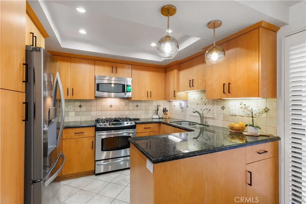 You will enjoy ocean breezes and city views in this sleek contemporary vibe tri-level town home. With its stylish remodel and an exceptional open floor plan—it is perfect for modern living and entertaining. Beautiful vinyl plank flooring flows throughout, complemented by recessed lighting and thoughtfully curated finishes. The main living level features a spacious living room with a cozy fireplace, built-in bookcase, and a private view balcony. The open dining area connects seamlessly to the kitchen, creating an ideal entertaining space. The kitchen is a standout with dark granite countertops, warm wood cabinetry, LG stainless steel appliances, and a Bosch dishwasher. There is an efficient pantry and lots of storage. Off the kitchen, there is a patio area for private relaxation. A beautifully updated half-bath completes this level. A dramatic curved staircase with soaring ceilings and skylight leads to the upper level, where you’ll find two expansive bedrooms. The primary suite offers cathedral ceilings, a private balcony with city views, three mirrored closets, and a generous en-suite ¾ bath. The secondary large bedroom—currently used as a workout studio—also features its own en-suite bath. A convenient hallway nook with storage adds functionality. On the entry level from the street, enjoy direct access to the attached two-car private garage, along with a large laundry room featuring side-by-side hookups plus an additional storage closet. Signal Hill is ideally located near the beach and very close to the shops, dining, and vibrant energy of Belmont Shore and downtown Long Beach. Enjoy stunning sunsets and sparkling city lights from your private balcony. You are also near the celebrated Hilltop Park, known for magnificent sunsets over the Pacific and perfect picnics. Plus, you are close to the Long Beach Airport, and UCLB. This is a wonderful place to enjoy relaxed and graceful coastal living. A truly cool, contemporary home that stands out from the rest. VA and FHA approved building- and truly move-in ready!