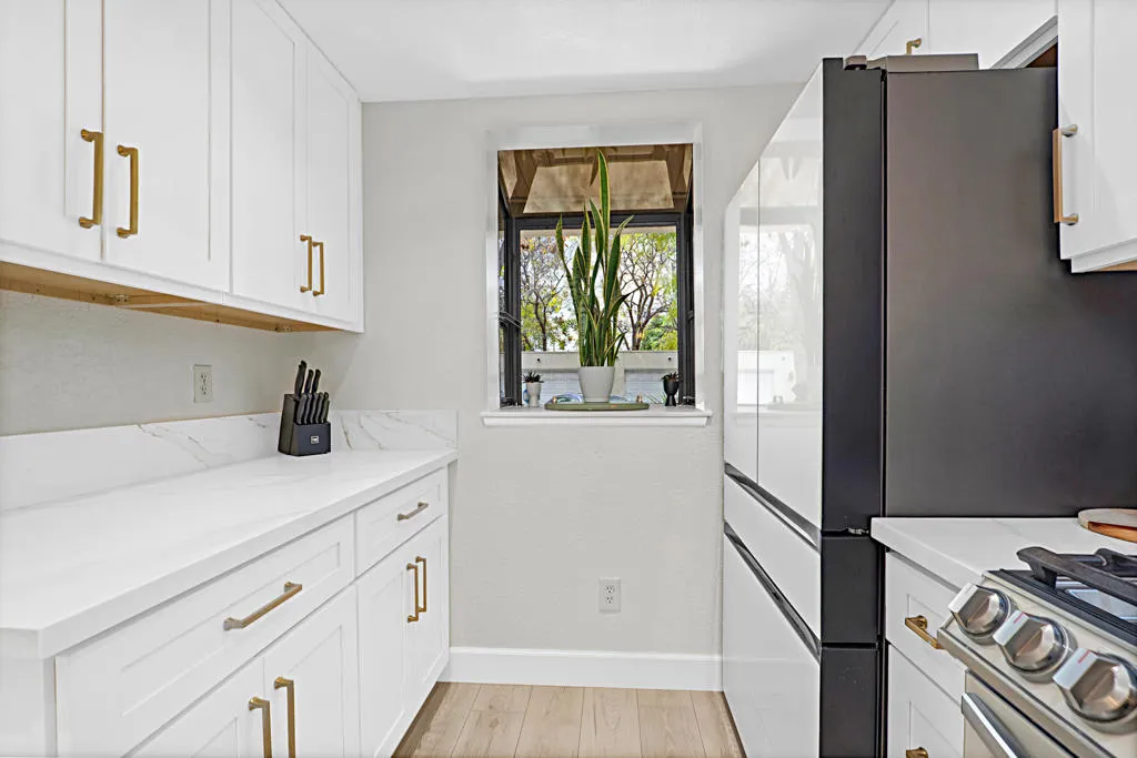 Situated in the sought-after Brooks of Claremont community, this beautifully updated two-bedroom, two-bathroom condominium offers the perfect blend of comfort, style, and convenience. Encompassing approximately 1,112 square feet, the home showcases updated laminate flooring throughout, adding a modern aesthetic with a warm, inviting feel. The thoughtfully designed floor plan features an upstairs primary suite that serves as a peaceful retreat, while the secondary bedroom offers flexibility as a nursery, guest room, or ideal work-from-home space. At the heart of the home, the fully renovated kitchen shines with Samsung Bespoke glass-front appliances, shaker-style cabinetry, and sleek quartz countertops, all completed in 2024. Updated plumbing fixtures and contemporary pendant lighting add the finishing touches to this bright and functional space. The living room is anchored by a cozy fireplace with a gas log lighter--perfect for relaxing evenings or entertaining guests. Enjoy seamless indoor-outdoor living with two private outdoor areas, including a patio thoughtfully designed for gardening enthusiasts--perfect for cultivating your own lush retreat or enjoying morning coffee in a tranquil setting. Additional highlights include in-unit laundry with a newer stackable washer and dryer (2023) updated hot water tank (2023), a spacious two-car garage with abundant storage, and access to a beautifully maintained, park-like community featuring mature landscaping, a pool, and spa. Ideal for a wide range of homeowners--from first-time buyers to those looking to downsize, new or growing families, and even frequent travelers seeking a ''lock-and-go'' lifestyle--this home offers both comfort and versatility. Located just moments from Claremont Village, enjoy easy access to charming restaurants, boutique shopping, and the vibrant character of this beloved college town, all within the award-winning Claremont Unified School District.