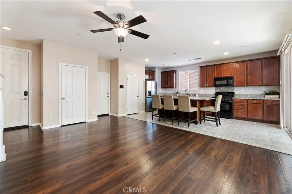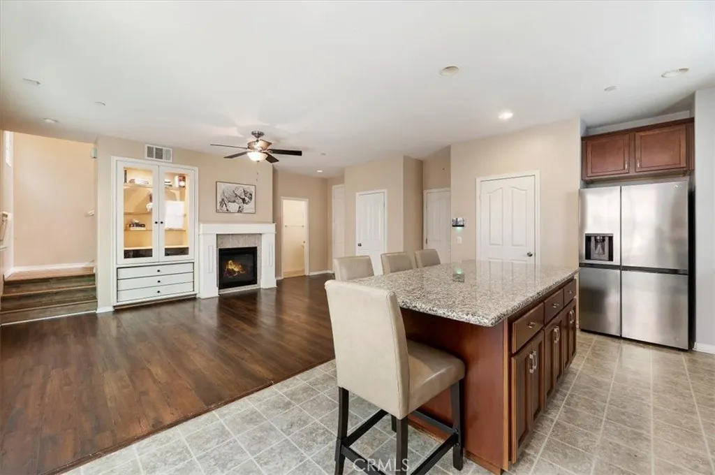 Damiana Lane, a beautiful home that combines comfort, efficiency, and lifestyle in the highly desirable Rosena Ranch community. Step inside to soaring high ceilings and a bright, open layout featuring solid flooring throughout—no carpet anywhere. The kitchen is designed for both function and style with dark wood cabinetry, granite countertops, a center island, large pantry, and a newer stainless steel refrigerator, all opening seamlessly to the main living area—perfect for entertaining. The living room is enhanced by a custom built-in media cabinet, cozy gas fireplace, and pre-wiring for TV and sound, creating a true gathering space. Upstairs offers 3 spacious bedrooms and 2 full bathrooms, including a comfortable primary suite with a dual sink vanity. Enjoy year-round comfort and efficiency with a newer energy-efficient Goodman HVAC system (SEER 2 rated). Outside, the home continues to impress with a 2-car garage and extended driveway for additional parking. The backyard features mature trees for added privacy and a large cement patio, ideal for outdoor living and entertaining. The front yard is thoughtfully landscaped with drought-tolerant design and a decorative rock riverbed, offering great curb appeal with low maintenance. Located just minutes from the local school, this home also gives you access to the incredible amenities of Rosena Ranch, including: Resort-style pool & spa, Clubhouse & fitness center, Parks, playgrounds & walking trails, Community events & open green spaces This is a fantastic opportunity to own a move-in ready home in a vibrant, amenity-rich community.