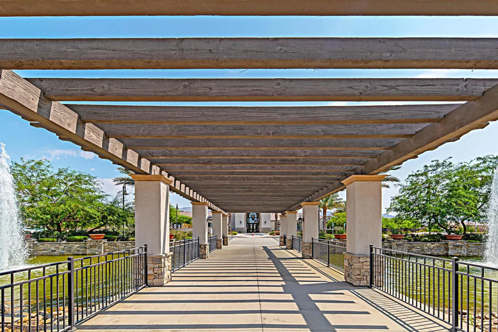 Charming and meticulously maintained 2-bedroom PLUS DEN, 2-bath home (1,555 SF). From the moment you enter through the custom iron front door, it's clear no detail has been overlooked. The welcoming foyer opens to a bright great room with abundant natural light, enhanced by plantation shutters throughout and a cozy gas fireplace that sets a relaxing tone. Beautiful tile flooring flows through the main living areas, creating a sense of calm and cohesion. The kitchen features stylish cabinetry, slab granite countertops, and a generous pantry, making it both functional and inviting. Step outside through sliding glass doors to a private backyard with stunning south and southwest mountain views and amazing sunsets. The wrought iron rear fence preserves the view of the desert landscape for uninterrupted vistas. The backyard has hookups to accommodate a spa. The spacious primary suite offers large windows framing breathtaking views. Inside the primary bath are dual vanities, and a large walk-in closet. A secondary bedroom and full bath are thoughtfully located down a private hallway, providing comfort and privacy for guests. The den provides ample space to be used as a formal dining room, office or potential third bedroom. Solar panels/solar shades provide extra energy efficiency.Welcome to Four Seasons at Terra Lago--an active 55+ resort-style community offering a beautifully designed clubhouse with social spaces, a modern fitness center, indoor/outdoor pools, tennis, basketball and bocce courts, a library, craft room, and clubs ranging from book discussions to watercolor painting. Whether you seek adventure, wellness, or connection, this vibrant community offers it all--just minutes from dining, shopping, and entertainment at Fantasy Springs Resort and Spotlight 29 Casino.