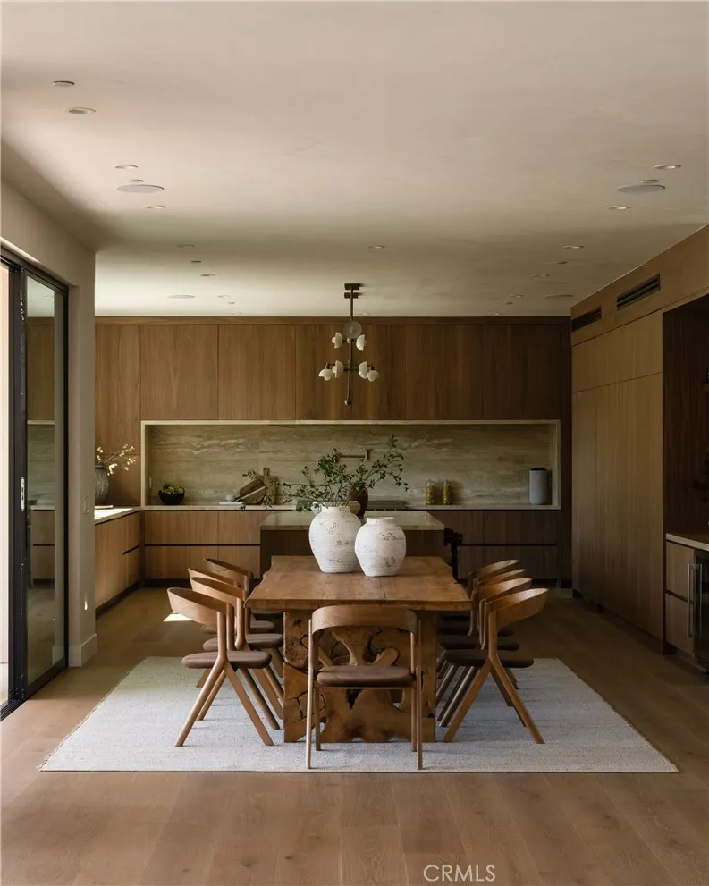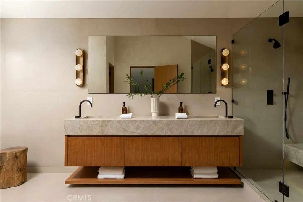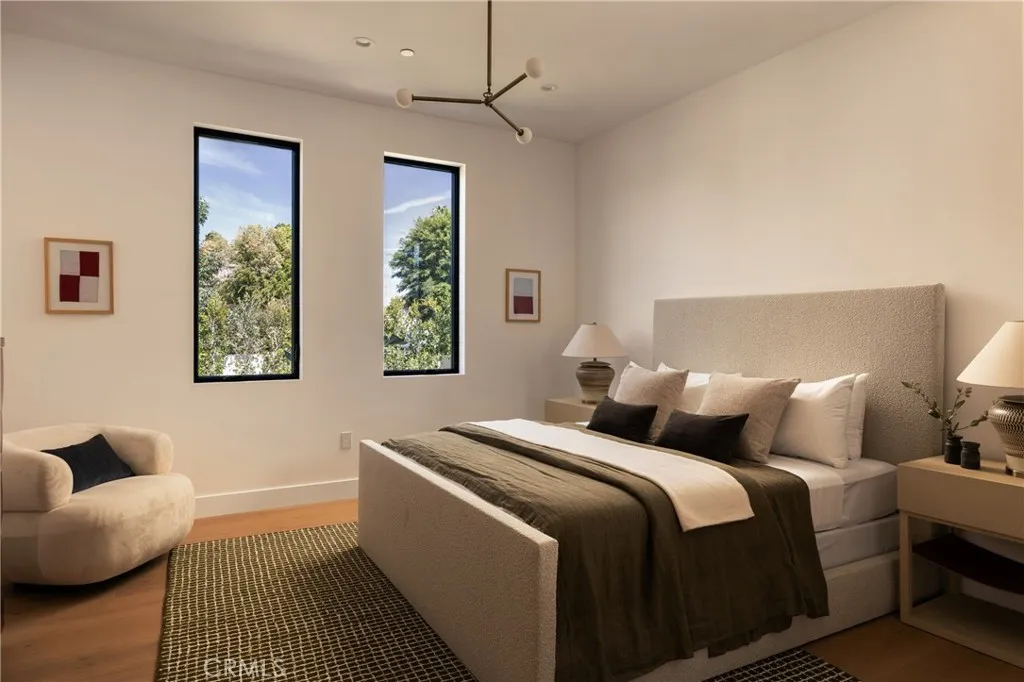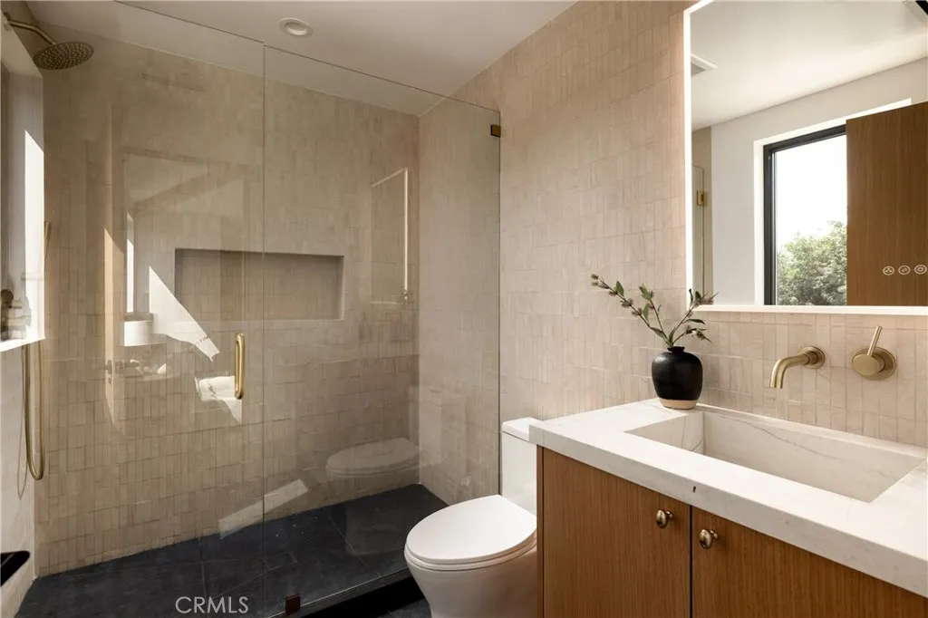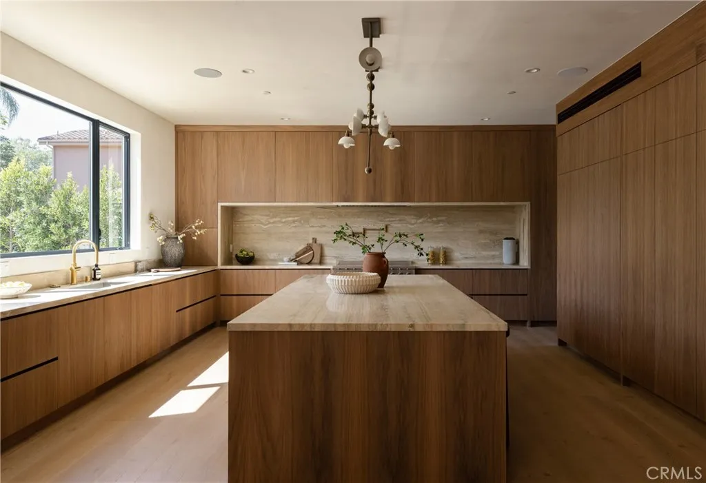Situated behind private gates on a sprawling 9,000+ sq. ft. corner lot, this newly constructed architectural estate boasts an attached 1-bed, 1.5-bath ADU. Designed for modern living, the open-concept main level flows seamlessly from the spacious living and dining area into the gourmet chef’s kitchen, outfitted with professional-grade appliances, sleek custom cabinetry, a massive island and walk-in pantry. Two oversized sliding glass doors effortlessly extend the living space to the covered patio, creating a seamless indoor-outdoor living experience. The backyard is a true entertainer’s retreat, showcasing a resort-style pool and spa, fully equipped outdoor kitchen and privacy hedges that surround the property. Completing the main level is an ensuite bedroom and chic powder bathroom with a one-of-a-kind stone sink. On the upper level, you’ll find four generously sized ensuite bedrooms, a dedicated laundry room and spacious loft area that leads out to an expansive balcony. The luxurious primary suite features a custom walk-in closet and sumptuous ensuite with a soaking tub, large glass-enclosed shower and double vanity. The ADU offers exceptional versatility with its own private entrance, a living room, full kitchen, one bedroom and two bathrooms, perfect for guests, extended family or as additional living space. Further highlights include high ceilings throughout, a two-car garage and fully integrated smart home system that manages lighting, climate, audio and security. Ideally located within the top-rated Kester Avenue Elementary School District, just moments away from Ventura Boulevard’s premier shops and restaurants, as well as the Sherman Oaks Galleria.