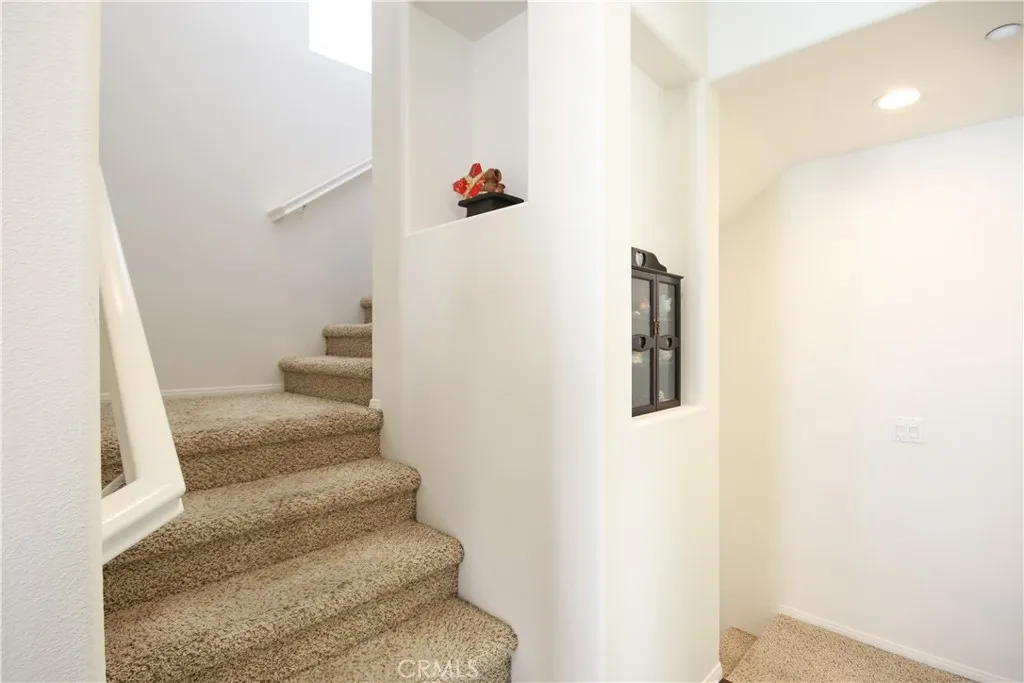 Welcome home to Garden Grove! This tri-level corner townhome offers approximately 1,333 square feet of open-concept living, where the kitchen seamlessly flows into the dining area and living room. It also features a private balcony, perfect for everyday living and entertaining. The kitchen is well-appointed with granite countertops, ample cabinetry, and stainless steel appliances. Upstairs, you'll find a spacious primary suite that includes a generously sized walk-in closet and a well-designed en-suite bathroom complete with dual vanities and a walk-in shower. Additionally, a secondary bedroom with its own private bathroom is located on the top floor, along with a conveniently placed laundry area. Designed with efficiency in mind, this LEED-certified home boasts energy-saving upgrades, including dual-pane windows, a tankless water heater, motion-sensor lighting, low-flow toilets, and high-efficiency Energy Star appliances, all contributing to lower utility costs. Other highlights include an oversized attached two-car tandem garage with extra storage space. Residents of Mosaic Walk enjoy access to a private pool and spa, sun deck, and tranquil courtyards with water features, with water and trash services included in the HOA dues. This home is conveniently situated near the 5, 22, and 57 freeways.