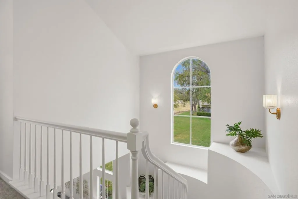 You’ll fall in love with this beautiful end unit 3 bedroom, 2.5 bath townhome located within the highly desirable Belsera Community in Tierrasanta. Perfecty positioned on a premium lot with picturesque park and mountain views! Beautifully designed for effortless indoor-outdoor living, the home features spacious patios at both the front and back—ideal for al fresco dining, relaxing, or entertaining while taking in the serene surroundings and mesmerizing views. Extensive renovations elevate every corner of the home, including luxury vinyl wood plank flooring, fresh interior paint, new carpet, recessed lighting, new white cabinetry, countertops, stylish lighting and fixtures. The kitchen showcasing quartz countertops, a tiled backsplash, farmhouse sink, pendant lighting, stainless steel appliances—perfect for casual dining or bar seating. A modern staircase leads you upstairs to the bedrooms, where the spacious primary bedroom serves as a relaxing retreat, complete with beautiful views, walk-in closet, and an en-suite bathroom with quartz countertops and a large walk-in shower with elegant tile finishes. Secondary bedrooms are located just down the hall and share a well-appointed bathroom with a tiled tub/shower combo and white quartz countertop. A brand new HVAC system was just installed. The property includes one attached garage and one detached garage. Located in a quiet neighborhood with two private pools & spas, plenty of green space to enjoy, volleyball courts, and bbq areas. DON’T MISS OUT ON THIS BEAUTY!