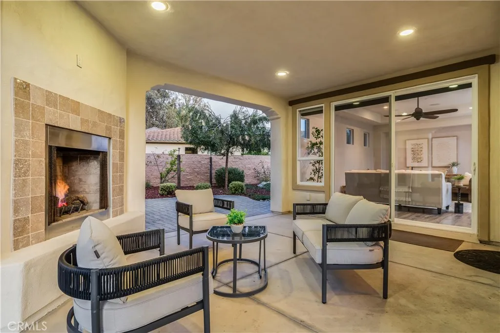 Spectacular Genova model located on a quiet cul-de-sac in the coveted Trilogy Monarch Dunes Resort Community. From the moment you arrive, the elegant stone-accented exterior and gated courtyard entry set the tone for this exceptional home. Featuring 2 bedrooms—including a private-entry casita ideal for guests, Plus enclosed Den. Ideally located on a spacious pie-shaped lot, backing to lush, private greenbelts, offering a tranquil setting and seamless indoor-outdoor living. The professionally landscaped backyard offers a peaceful and thoughtfully curated outdoor retreat, featuring a covered patio with fireplace, raised garden beds, dry riverbed features, artificial turf, vibrant flowers, and fruit-bearing trees. Inside, you'll find beautiful flooring, upgraded kitchens and baths, an oversized "smart space" utility room and sophisticated finishes throughout. Thoughtful upgrades include prepaid solar, whole-house water filtration, new carpet, new paint, new gas cooktop range, new recessed lighting, custom window treatments, ceiling fans, stone countertops, a tankless water heater, a side-yard warm-water dog wash spigot, and a dramatic sliding wall that opens to the outdoor living space. This rare offering blends luxury, privacy, and nature in one stunning home—schedule your showing today!