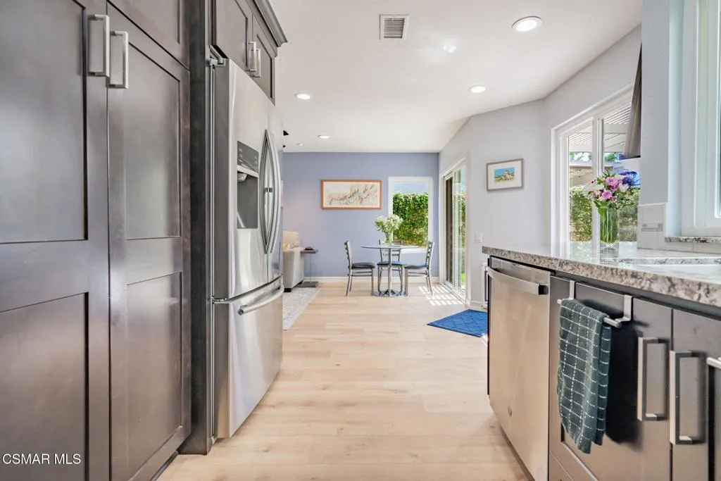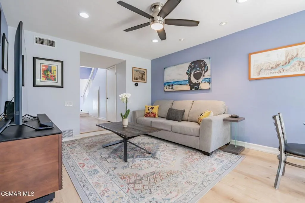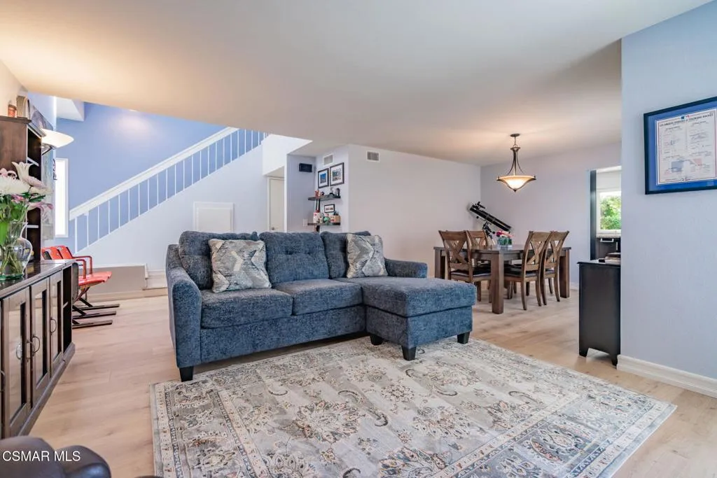 Don't miss out on this immaculate three bedroom three bathroom charmer in the desirable Creekside neighborhood of Moorpark. Downstairs you'll find an upgraded kitchen, remodeled bathroom, new flooring, comfortable living room featuring a fireplace, a relaxing family room, and a dining room ready for those special occasions. Upstairs you'll enjoy the view from the primary bedroom as well as the renovated and upgraded bathrooms. Other features include a new furnace, freshly painted exterior, and a spa-ready pad with electrical available. Shopping, Mountain Meadows elementary school, Moorpark High School, Mountain Meadow Park, Moorpark's Arroyo Vista Community Center, and a community pool are all conveniently nearby. Don't wait, this one won't last long!