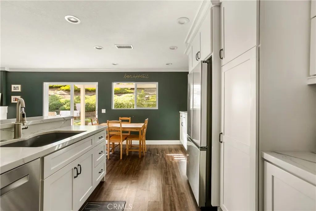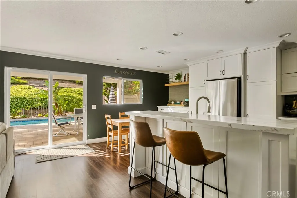 Nestled on a peaceful cul-de-sac in the highly desirable community of Mission Viejo, this beautifully appointed two-story home offers approximately 2,573 square feet of thoughtfully designed living space with 4 bedrooms and 3 bathrooms. The open-concept floorplan creates a seamless flow ideal for both everyday living and entertaining. The upgraded kitchen is the heart of the home, featuring quartz countertops, shaker-style cabinetry, stainless steel appliances, and a professional-style 6-burner stove. The kitchen opens directly to the cozy family room, where a warm fireplace creates an inviting space for gatherings and relaxation. Upstairs, a spacious bonus room offers flexible living space perfect for a media room, playroom, or home office. Step outside to a private backyard retreat designed for enjoyment year-round. The beautiful pool is complemented by low-maintenance artificial turf, a built-in fire pit, and a charming outdoor seating area—perfect for entertaining or unwinding in the peaceful, upscale surroundings. Additional highlights include solar, generous living spaces, and access to the many recreational amenities and outdoor opportunities that make Mission Viejo such a sought-after place to live.