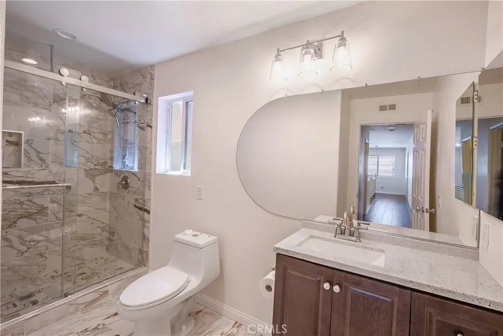 From convenience to comfort, this beautifully upgraded home offers the ideal Orange County lifestyle. Located in the sought-after Camrosa neighborhood near Twila Reid Park, this spacious residence features 5 bedrooms, 3 bathrooms, and approximately 2,858 sq ft of living space, including a highly desirable downstairs bedroom and full bath. Step inside to an open-concept layout filled with natural light, 9-foot ceilings, and a seamless flow designed for modern living. The recently updated kitchen showcases newer cabinetry, granite countertops, and a large island that opens to a grand family room complete with a stunning stone fireplace and built-in entertainment center. Recent upgrades within the last 3 years include interior paint, updated bathrooms, recessed and dimmable lighting with smart switches, and modern fixtures and fans throughout. The home is also equipped with a private security system and cameras for added peace of mind, along with built-in speakers throughout. The primary suite offers vaulted ceilings, abundant natural light, dual walk-in closets, and a spa-inspired bathroom featuring a soaking tub, separate shower, and dual sinks. Upstairs also includes three additional bedrooms and a convenient laundry room complete with washer, dryer, utility sink, and adjacent linen storage. The garage is thoughtfully equipped with built-in storage cabinets, a Tesla charger, water softener filtration system, and irrigation controls. Step outside to your private entertainer’s backyard featuring block wall fencing, a pergola with fan and lighting, BBQ setup, gas fire pit, artificial turf for low maintenance, and a beautifully curated succulent garden. Ideally located in the heart of Anaheim, just minutes from Disneyland, Knott’s Berry Farm, shopping, dining, and major freeways—this home truly has it all.