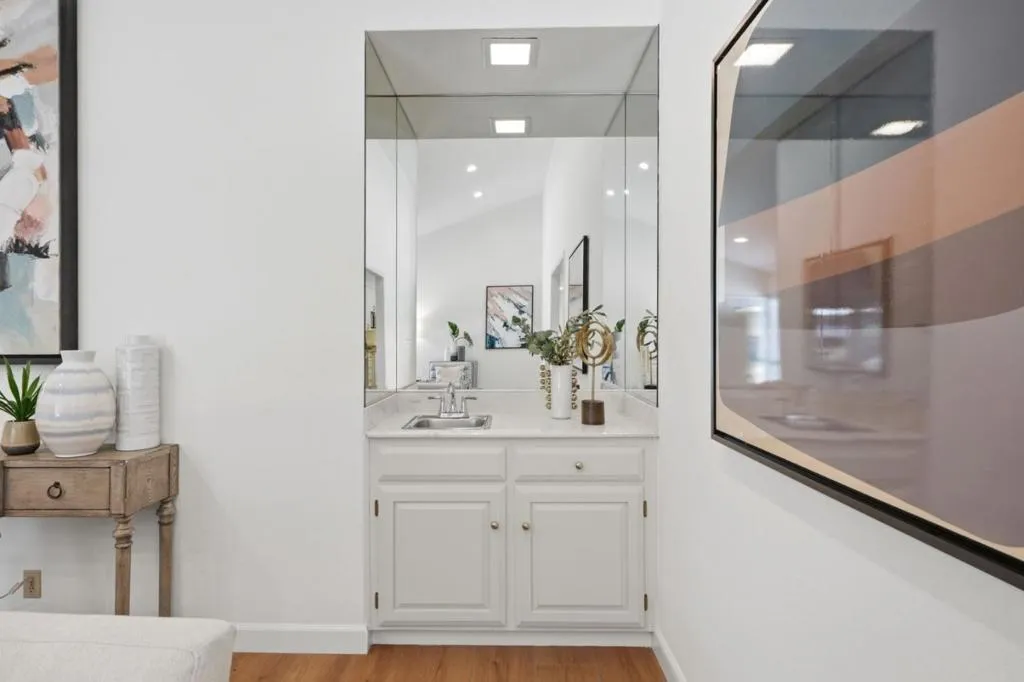 Beautiful Ranch style home located between Historic Downtown Saratoga & Villa Montalvo, served by the top-rated Saratoga School District. With Downtown Saratoga less than half a mile away, you can leave the car at home & enjoy dining, coffee, shopping. Step inside to the new flooring, tall ceilings & abundant natural light. Remodeled eat-in Kitchen includes expansive granite counter space, tile backsplash, double ovens, spacious pantry, stainless steel appliances, recessed lighting, tray ceiling. Both Living Room & Family Room each feature soaring ceilings that create an open feel. Formal Dining Room perfect for hosting guests or family dinners. Primary suite features a tall ceiling, 3 closets including a large walk-in & French doors to the backyard. Remodeled primary Bathroom with tile flooring, dual vanities, soaking tub, tiled shower with bench, water closet. Remodeled hall Bathroom features double sink vanity & tile flooring. Dedicated Laundry Room. Large 3-Car Garage with new Garage doors, new openers with battery backup, utility sink, water softener. Step outside to your private Backyard oasis featuring multiple patio areas, pool & spa, new low-maintenance landscaping with automated drip system, serene mountain views perfect for relaxing or entertaining.