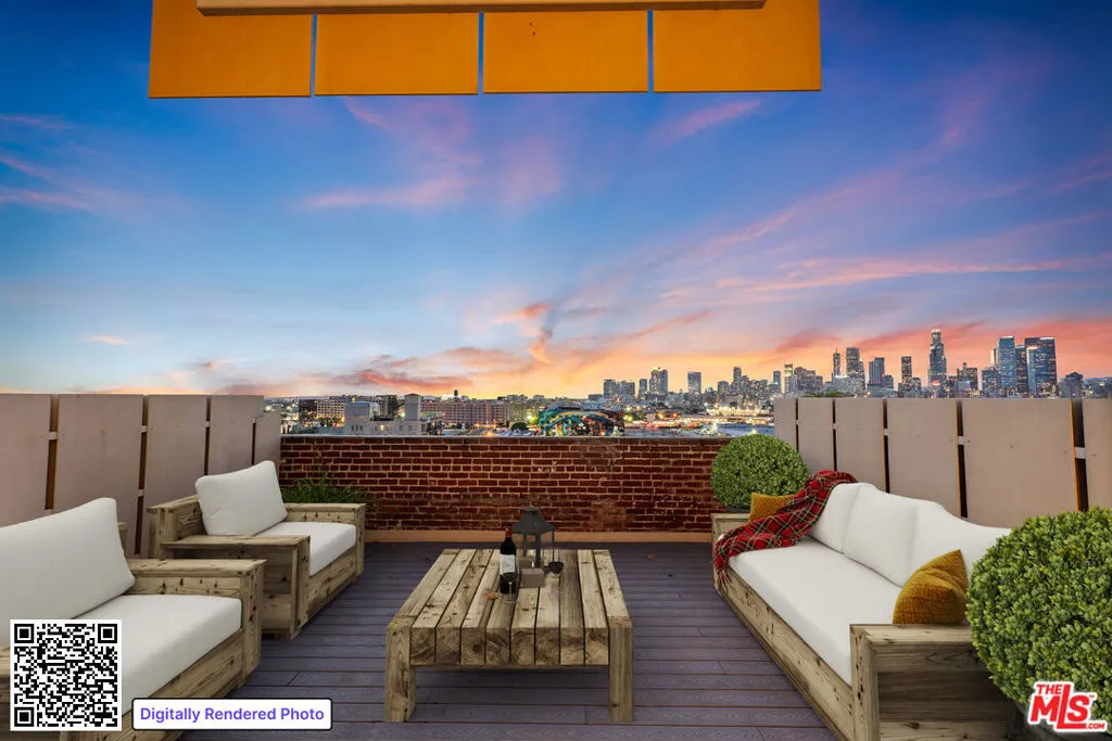 Penthouse Living in the Heart of the Arts District at the historic Biscuit Company Lofts. Experience a rare opportunity to lease a stunning two-story penthouse at the iconic Biscuit Company Lofts, a registered historic landmark originally built in 1925 as the West Coast headquarters of the Nabisco Baking Company and thoughtfully transformed into modern residences in 2006. Rich in character and architectural significance, the building honors its industrial heritage with exposed brick, original hardwood floors, soaring ceilings, and oversized factory-style windows. Penthouse #710 offers a true live/work lifestyle in a gallery-like setting, featuring a dramatic open floor plan with 16-foot vaulted ceilings, exposed ductwork, and expansive industrial-style windows that flood the space with natural light while showcasing panoramic city skyline views. The main level features a step-up living area with custom floor-to-ceiling built-ins and rolling ladder, along with a sleek stainless-steel kitchen appointed with Wolf and Sub-Zero appliances. The open layout also provides ample space for both dining and casual breakfast seating.Upstairs, the primary suite captures sweeping Downtown LA views and breathtaking California sunsets. The upper level also includes a sitting area, office nook, walk-in closet, spa-inspired bath, and generous storage. Completing the residence is a private rooftop deckan ideal setting for entertaining, dining al fresco, or unwinding above the city.Located in the heart of the vibrant Arts District, this home places you just moments from some of Los Angeles' best dining and culture, including Bestia., Bavel, Girl and the Goat, Damian, and Camelia. Everyday conveniences such as Hank's Organic Grocery are right next door, making this one of the city's most walkable and sought-after neighborhoods.Community amenities include a resort-style lap pool, outdoor lounge and dining areas, BBQs, and a 24-hour attended lobby.A rare blend of history, design, and location, this is penthouse living at its finest.