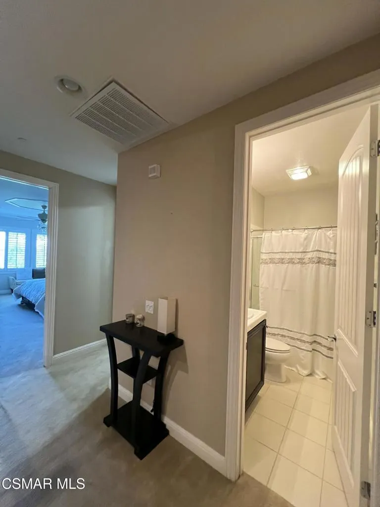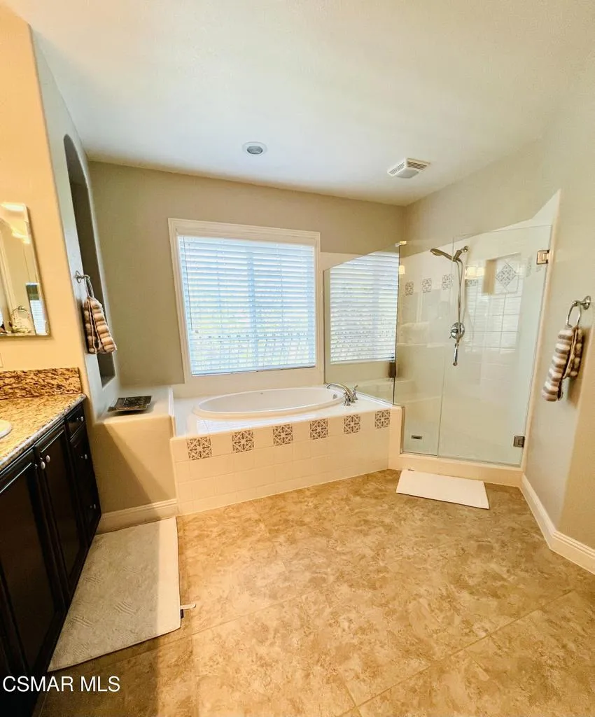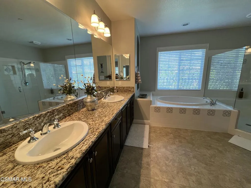Welcome to the Vistas at Indian Oaks, a fantastic gated community sitting at the top of the hill! Enjoy your luxury 3bd, 3.5 bath fully furnished townhome with over 1900 square feet! Coming through your private courtyard entrance, you will find a living room / dining area with beautiful appointments, fireplace, tall ceilings and downstairs powder room. The gourmet kitchen features beautiful cabinetry, stainless steel appliances, granite countertops and a breakfast bar. Outside of the dining area you will find a peaceful patio to sit and enjoy your outdoor space. Upstairs, you will find more tall ceilings and 3 bedrooms. The primary bedroom is truly relaxing with fireplace and beautiful views. The en-suite bathroom features a double vanity, separate soaking tub and walk in closet. 2 secondary bedrooms are also upstairs, one used as an office and one featuring and en-suite bathroom. The third full bath sits in the hallway along with the upstairs laundry room. This home also features plenty of storage, a Tesla power wall energy backup system, and an attached 2 car garage. The home comes fully furnished (or may be delivered unfurnished) with beautiful upscale appointments and artwork to enjoy. Enjoy the the conveniences of nearby freeway access, hiking trails and the Vineyards at Porter Ranch shopping center. The community also features a pool and spa with great views! Welcome Home!