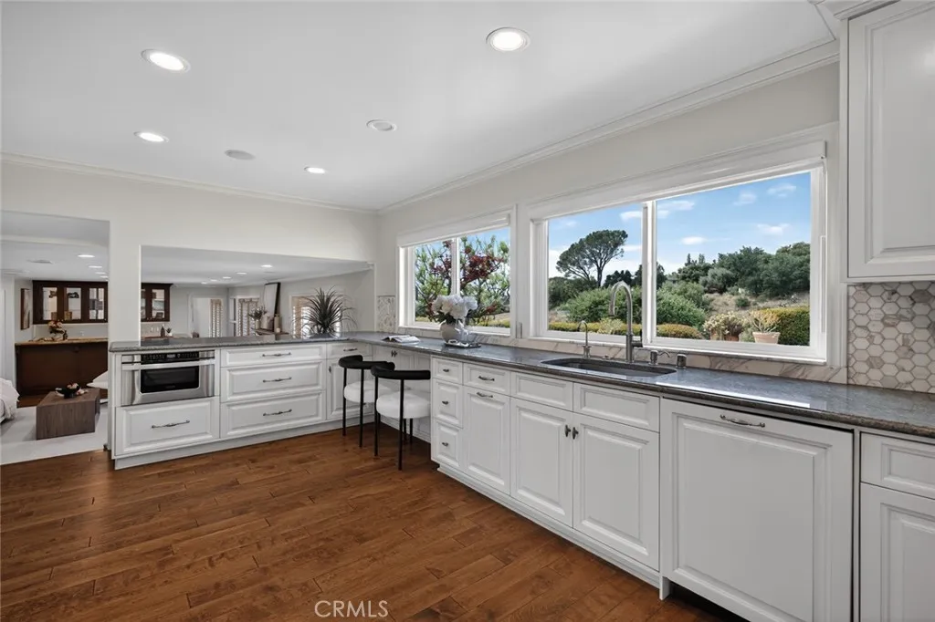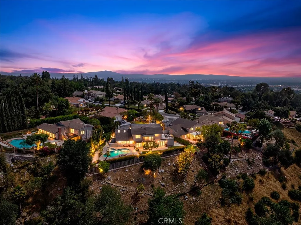 Bright and refined pool residence with sweeping canyon and city-light views, set at the end of a quiet cul-de-sac in the prestigious Kinneloa Mesa enclave of Pasadena. Positioned on an expansive 31,000+ sq ft lot, the property offers a rare combination of privacy, scale, and a serene connection to its natural surroundings. Vaulted ceilings, skylights, and expansive windows fill the interiors with natural light, creating an airy and sophisticated ambiance. The open living and dining areas are anchored by a marble fireplace, while the kitchen features quartz countertops, stainless steel appliances, and a breakfast area overlooking the canyon and grounds beyond. A spacious family room with built-ins, wet bar, fireplace, and full bath opens through French doors to the outdoor setting. The flexible floor plan includes two primary suites, including a main-level suite, while the upper-level primary features vaulted ceilings, a walk-in closet, and dual view decks capturing panoramic mountain, canyon, and city-light vistas. Additional bedrooms complete the upper level. The grounds offer a private retreat with pool, spa, mature fruit trees, and generous patio spaces designed for both entertaining and quiet relaxation. The hillside landscape enhances the sense of seclusion while showcasing the property’s picturesque setting. A three-car garage and close proximity to shopping, dining, and major commuter routes complete this exceptional offering—where privacy, views, and lifestyle converge in one of Pasadena’s most sought-after neighborhoods.