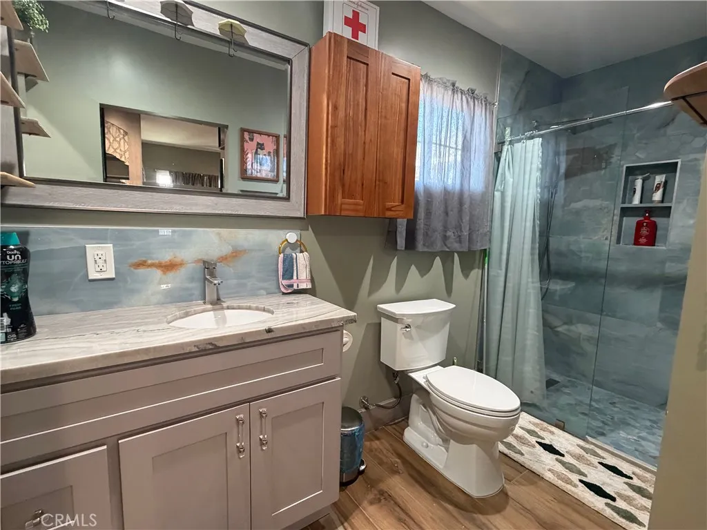 Newer built ADU offering modern comfort and thoughtful design. Spacious living room offers space for a desk and opens up to the kitchen and eating area. The kitchen is equipped with custom countertops, stove, and a microwave. Dining area features built-in seating with storage drawers, maximizing both style and functionality. Oversized bedroom includes a built-in bed plus space for an additional bed. The ¾ bath includes a shower along with convenient stackable washer and dryer. Features include central air and heat ,Italian tile flooring, parking space, and gated driveway. Property is conveniently located with easy access to shopping and transportation.