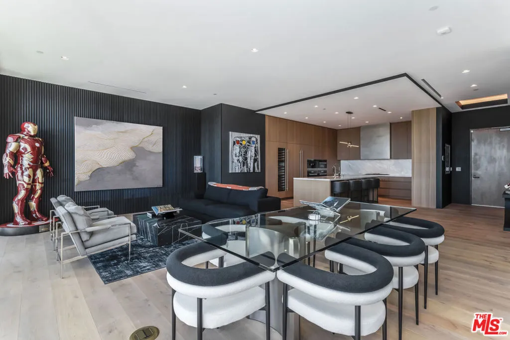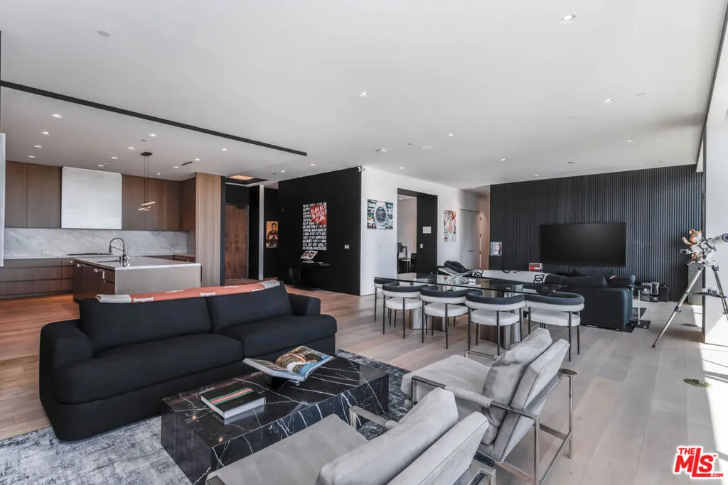 Presenting Residence 9D at 8899 Beverly, a junior penthouse positioned on the highest floor below the penthouse level, designed by Olson Kundig, one of the most sought-after and design-forward architecture firms working today. Uptown Manhattan meets prime Los Angeles in this south-facing three-bedroom home filled with natural light and offers sweeping city views through expansive walls of floor-to-ceiling glass, creating a seamless indoor-outdoor connection. The open living and dining areas flow through clean architectural space with a discreet office nook, while a thoughtfully separated bedroom wing provides privacy from the main entertaining spaces. The primary suite includes dual walk-in closets, a spa-like bathroom with a sculptural floating soaking tub, and direct access to a private terrace with jetliner views. Finishes throughout are both warm and modern, including Italian travertine, hand-selected Calacatta Gold marble, and bespoke bronze detailing, while the fully integrated kitchen features appliances by Sub-Zero, Miele, and Gaggenau along with custom hardware including hand-stitched leather pulls. This is the only residence of its kind; with a modern designer-led refresh featuring a full Sonos sound system, Lutron automated shades, Lutron automated lights, and integrated Amazon Alexa voice control. It also includes Ring cameras & security system, keyless entry custom faucet and a multi-stage alkaline, pH-balanced reverse osmosis water filtration system. All complemented by custom designer-imported wall panels and bespoke wallpaper that create a refined, gallery-like finish. 8899 Beverly offers full-service amenities including 24-hour concierge and valet, a state of the art fitness center, and a beautiful outdoor retreat with pool, spa, fireplaces, and outdoor kitchen. Prime location moments from the premier dining, shopping, and nightlife of West Hollywood and Beverly Hills.