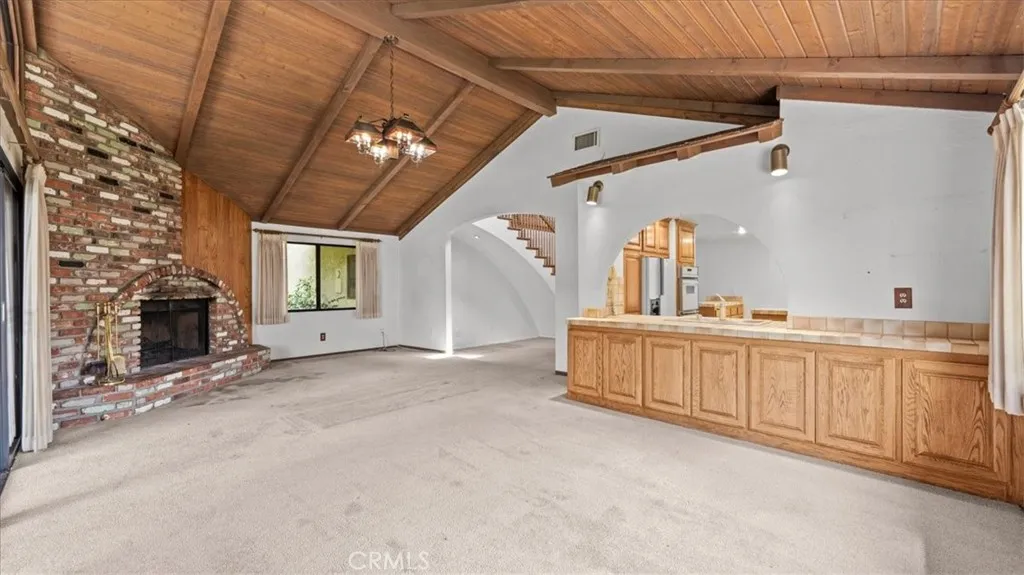 This view home will not last! The golf course and sunset views are spectacular! Welcome to one of the most coveted locations in all of the North La Verne Hillside. You will be delighted the moment you pull up to this warm, Spanish-style residence, with its arched entryway, handsome brick-paver driveway, and a striking wood pergola courtyard that sets the tone before you ever step inside. Enter and discover a spacious living room anchored by a wood-paneled fireplace surround and a graceful staircase leading to the home's true showpiece: a dramatic loft and game room with soaring vaulted ceilings, exposed wood beam detail, and a second brick fireplace. This is a room unlike anything the neighbors have. The kitchen features warm wood cabinetry, tile countertops, and a functional layout with an adjoining dining area open to the great room. The bedrooms are well-proportioned, clean, and quiet, with windows framing the surrounding hillside. The home is in original condition and immaculately presented throughout. Pride of ownership shows in every room. Step into the backyard and prepare to stop what you are doing. A substantial covered patio and generous deck area flow onto an expansive green lawn. The elevated position delivers open sky in every direction. The fairways of the San Dimas Canyon Golf Club stretch across your full sightline, and the sunsets here earn their own audience every evening. The second-story balcony offers another vantage point that you will often return to. The aerial photography confirms what the address promises: this home sits perched high above the valley floor, & the views are real. Come at dusk, and you will understand. Commuter-friendly, the 210 Freeway is at the southern end of North La Verne, placing Pasadena within 30 minutes & downtown Los Angeles within an hour. For professionals seeking genuine distance from the city without surrendering their commute, this location delivers. Marshall Canyon Regional Park, 120 acres of hiking & mountain biking trails, is minutes away, as is Marshall Canyon Golf Course. The Bonita Unified School District serves this address, with Oak Mesa Elementary, Ramona Middle School, & Bonita High School. All top-rated schools. A hillside address with a vaulted loft, a perfect space for a pool table, a covered pergola, an outdoor fireplace, and a golf course view, all located on a quiet hillside cul-de-sac. What more could you ask for? Please call for your personal tour. This house will not last!