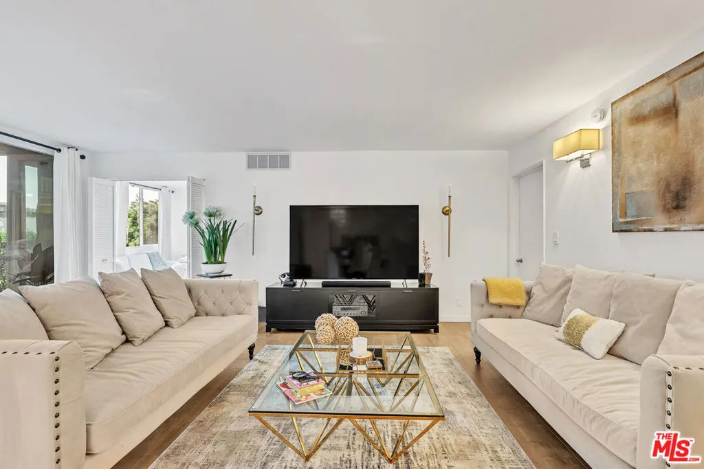 Welcome to this beautifully furnished 2-bedroom, 1.5-bath condo located on the 4th floor in prime Beverly Hills. This private residence offers a bright, functional layout and is available for lease, fully furnished for a turnkey living experience.The spacious living area opens to a private patio, ideal for enjoying natural light and sunset views. The unit is thoughtfully designed for both comfort and convenience. Additional features include two tandem parking spaces in a secure underground garage and access to a rooftop pool that is heated year-round. Situated in a highly desirable, walkable Beverly Hills location, just moments from world-class dining, shopping, and entertainment.Private showings only.