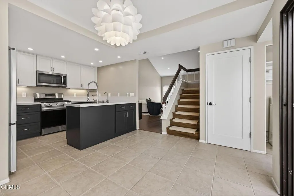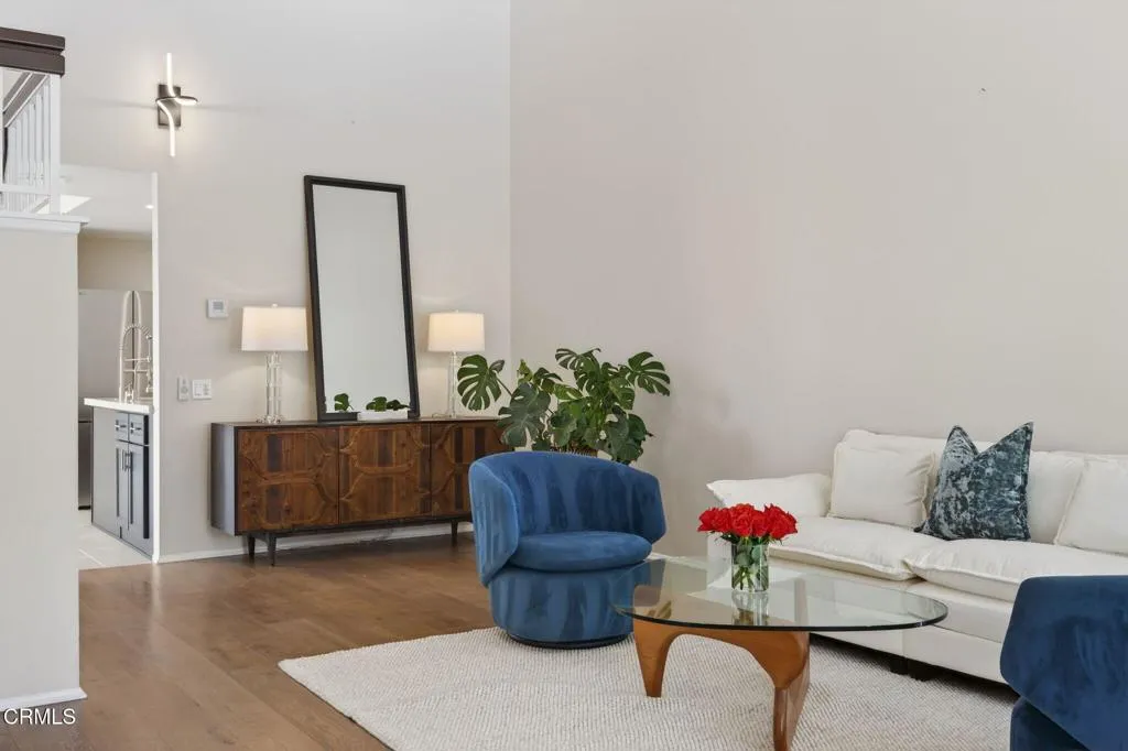 Beach Walk townhomes are set across beautifully landscaped grounds just one block from downtown and a short stroll to Carpinteria State Beach, offering an exceptional blend of coastal charm and everyday convenience.This highly sought-after community showcases Spanish-style architecture and relaxed coastal living just steps from the heart of Old Town Carpinteria. This open, light-filled 3-bedroom, 2-bath, two-story residence features a largest floor plan in the complex, thoughtfully designed for both comfort and functionality.The home has been tastefully updated with fresh paint, new flooring, modern lighting, and an improved kitchen, creating a clean and inviting interior. Soaring cathedral ceilings with exposed dark wood beams enhance the spacious living room, complete with a cozy fireplace and plantation shutters that add warmth and character.The generously sized primary suite is conveniently located on the main level and opens to a private patio, offering a peaceful retreat. Two sun-filled patios provide ideal spaces for outdoor dining and relaxation.Additional highlights include a pantry, in-unit laundry, and a detached two-car garage. Residents enjoy access to a central pool and beautifully maintained grounds, just moments from the unit.Perfectly positioned within the community, this light-filled and updated home offers a rare opportunity to enjoy one of Carpinteria's most desirable coastal residences.