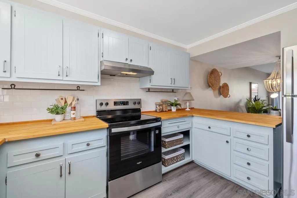 Located in one of Point Loma’s most coveted townhome communities, Loma Riviera offers timeless Spanish architecture and beautifully maintained grounds. Welcome to this elegantly updated 3-bedroom featuring a newly refinished kitchen with butcher block-style countertops, brand new stainless steel appliances including dishwasher, range/oven, and hood, along with modern hardware and decorative accents. Newly refinished bathroom with subtle Turrazzo tile flooring and brand new marbled counter top, decorative mirror, lighting and new sink and faucet. The flexible floor plan includes a formal dining area that can be enjoyed as a separate space or integrated into the main living area. The living room features a fireplace and new sliding glass door that opens to a private patio, providing access to a full-size laundry room with storage and a brand new dryer. The downstairs living areas are finished with luxury vinyl plank flooring, while brand new carpet extends throughout the stairs and bedrooms. The entire interior has been recently repainted and new decorative lighting fixtures added. Upstairs, the bedrooms feature vaulted wood-beamed ceilings, abundant natural light, and thoughtful details throughout. The primary bedroom offers a private balcony, walk-in closet, and an additional traditional closet. Secondary bedrooms are bright and include mirrored closet doors. Additional features include a charming front porch, 2 covered carport spaces, one directly in front of the home, and a second nearby. The Loma Riviera community is known for its lush, well-maintained landscaping. Located in one of Point Loma’s most coveted townhome communities, Loma Riviera offers timeless Spanish architecture and beautifully maintained grounds. Welcome to this elegantly updated 3-bedroom featuring a newly refinished kitchen with butcher block-style countertops, brand new stainless steel appliances including dishwasher, range/oven, and hood, along with modern hardware and decorative accents. Newly refinished bathroom with subtle Turrazzo tile flooring and brand new marbled counter top, decorative mirror, lighting and new sink and faucet. The flexible floor plan includes a formal dining area that can be enjoyed as a separate space or integrated into the main living area. The living room features a fireplace and new sliding glass door that opens to a private patio, providing access to a full-size laundry room with storage and a brand new dryer. The downstairs living areas are finished with luxury vinyl plank flooring, while brand new carpet extends throughout the stairs and bedrooms. The entire interior has been recently repainted and new decorative lighting fixtures added. Upstairs, the bedrooms feature vaulted wood-beamed ceilings, abundant natural light, and thoughtful details throughout. The primary bedroom offers a private balcony, walk-in closet, and an additional traditional closet. Secondary bedrooms are bright and include mirrored closet doors. Additional features include a charming front porch, 2 covered carport spaces, one directly in front of the home, and a second nearby. The Loma Riviera community is known for its lush, well-maintained landscaping and resort-style amenities, including a heated pool, expansive grassy areas, BBQ spaces, and a clubhouse with kitchen and gathering areas.