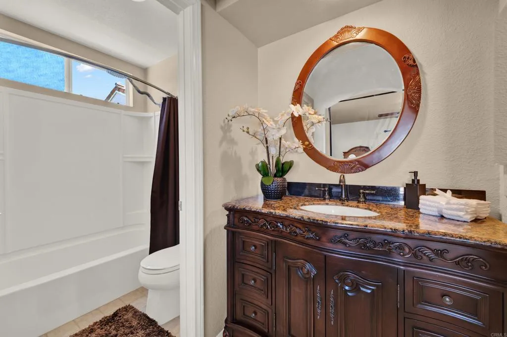 Located on a quiet cul-de-sac in the highly sought-after Ocean Terrace neighborhood, this exceptional and well maintained home is the perfect opportunity for a first-time buyer or those seeking flexible living arrangements! Thoughtfully designed, the layout is ideal for potential multi-generational living, featuring not one, but two spacious primary suites with private balconies on the second floor, along with a third bedroom and full bathroom on the main level! The home offers both formal living and dining rooms, as well as a separate family room and additional dining area, providing ample space for everyday living and entertaining. Three fireplaces...located in the main primary suite, living room, and family room add warmth and charm throughout the home. The beautifully refreshed kitchen showcases Silestone countertops, stainless steel appliances, and with it's picturesque backyard views, cooking will be a joy everyday! The main primary suite is a true sanctuary, complete with a large en-suite bathroom featuring dual vanities, a separate walk-in shower, a jetted tub, and a spacious walk-in closet. Enjoy your morning coffee or evening sunsets from it's private balcony with peek-a-boo ocean views, along with scenic vistas of the surrounding mountains and foothills. The second upstairs suite also includes it's own full bathroom and a generous private balcony. The giant park-like backyard backs to a serene greenbelt area and has plenty of room for a swimming pool, cabana or whatever your heart desires! Additional highlights include a complete roof re-papering completed in December 2024, offering added peace of mind for the new owner! Ideally located just minutes from beautiful sandy beaches, with Calavera Preserve and it's scenic hiking trails only a few blocks away, as well as convenient access to world-class dining, shopping, and golf. This stunning home is truly move-in ready...nothing to do but unpack and start making memories!