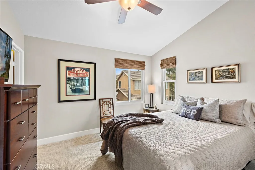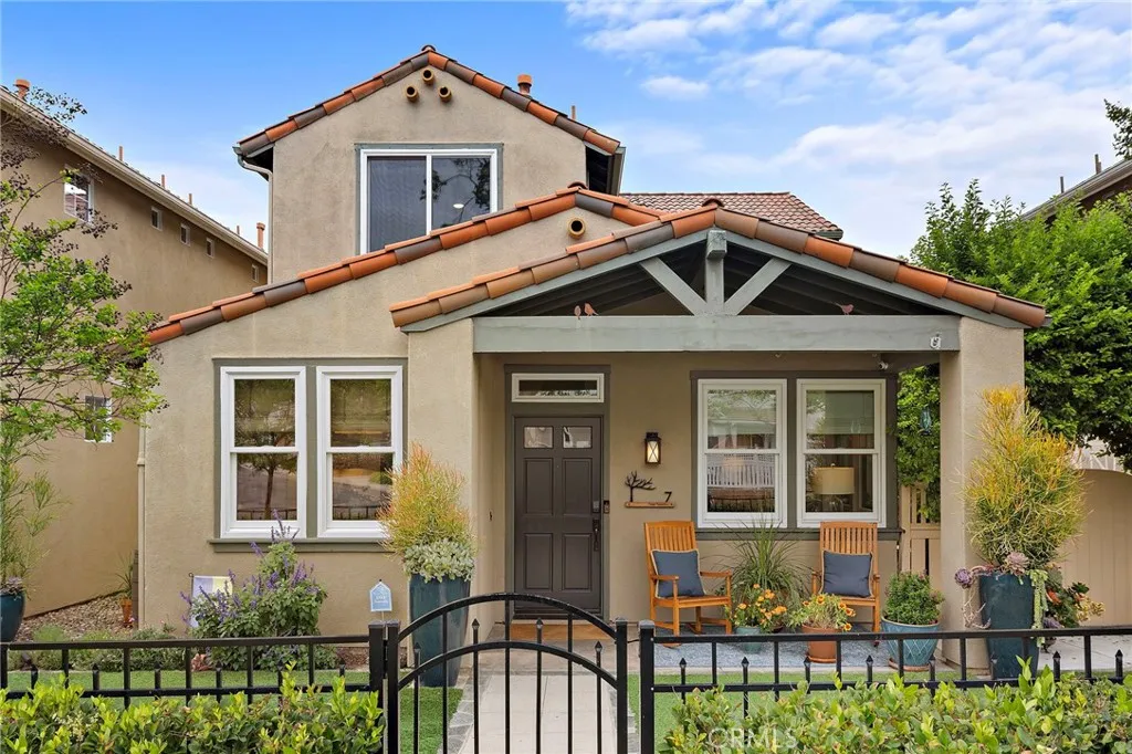 Absolutely gorgeous home located in the highly desirable gated community of Los Paseos in Rancho Santa Margarita! Sunshine fills the home with beautiful natural light, creating a warm and inviting atmosphere throughout. From the moment you arrive, you’ll be impressed by the professionally remodeled front landscaping featuring low-maintenance artificial turf, oversized potted plants, and a charming front porch—perfect for rocking chairs and enjoying the peaceful views. Step inside to an open floorplan with high ceilings and newer recessed lighting throughout. This home has been completely remodeled with designer touches at every turn. The kitchen is a true chef’s delight, showcasing premium Thermador appliances, larger stainless sink, designer shaker cabinetry with upgraded hardware, a stunning quartz countertop with matching backsplash, and an added island with extra storage & dining. Upgraded rollout shelves and enhanced lighting make this kitchen as functional as it is beautiful. The spacious living room offers plenty of room for a large TV and features a cozy automatic fireplace for chilly evenings. Large sliding glass doors open to a professionally landscaped backyard complete with a SunSetter awning, gas outlet for BBQ, and additional space for outdoor dining or gardening—perfect for entertaining family and friends. Designer luxury vinyl flooring enhances the downstairs, while upgraded carpet adds comfort upstairs. Additional upgrades include designer woven blinds throughout, newer HVAC, a whole house fan, Anderson windows, interior and exterior designer paint, newer fencing, and the entire home was re-piped in 2025 for added peace of mind. The versatile floorplan includes a large downstairs room currently used as an office, with two spacious bedrooms upstairs featuring modern ceiling fans. All three bathrooms have been fully remodeled, including a luxurious primary suite with a large walk-in shower—perfect for unwinding after a long day. The upstairs laundry area adds everyday convenience. The two-car garage features epoxy flooring, a 220V car charger, and ample storage. Ideally located near award-winning schools, parks, pools, shopping, dining, the RSM Lake, the RSM Lagoon/Beach Club and easy access to the 241 toll road—this home truly has it all. Don’t miss this incredible opportunity!