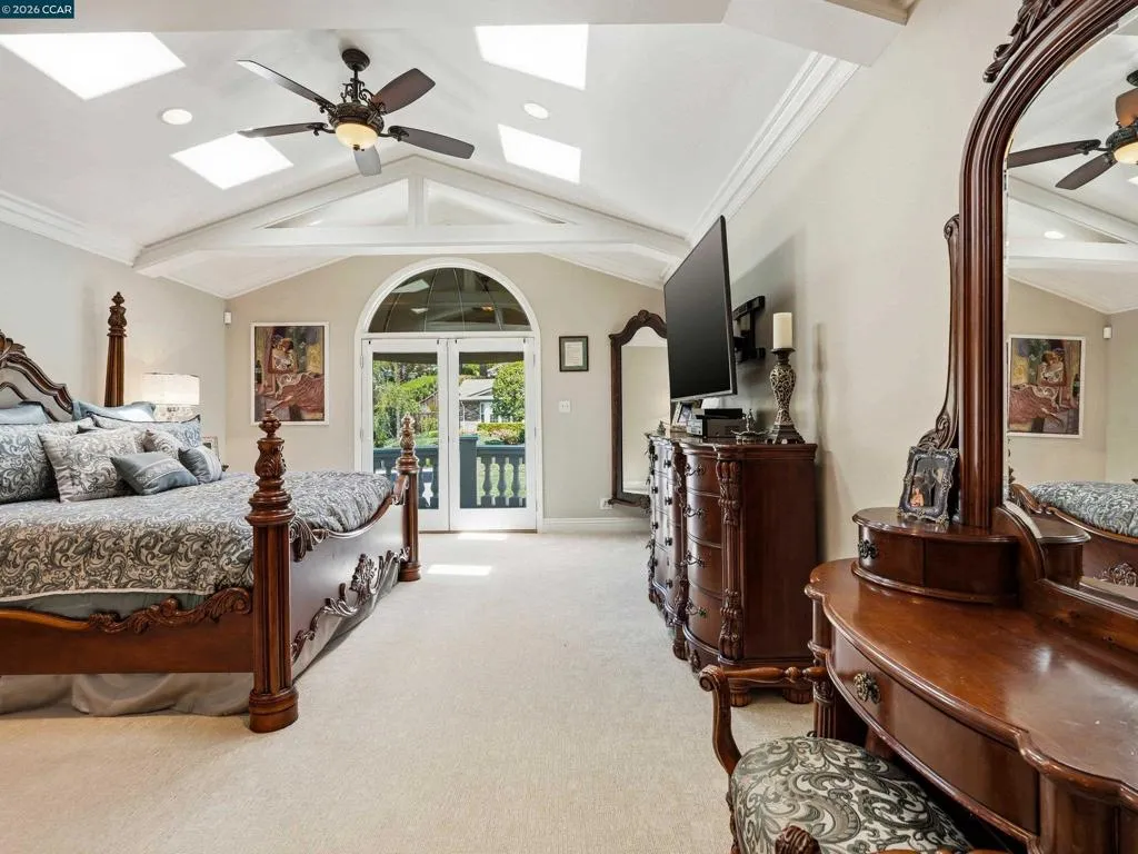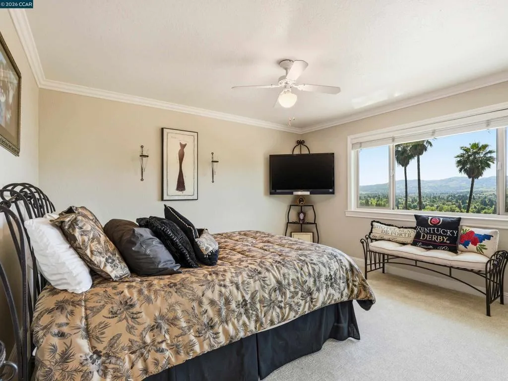 Million dollar valley views! Rarely does a home of this caliber come to market. Impeccably maintained with an extraordinary level of care, this stunning residence offers refined living. Showcasing four bedrooms and three full baths, including a highly desirable main-level ensuite. This home is filled with natural light and timeless architectural detail. Expansive living spaces are enhanced by beam ceilings wrapped in crown molding, custom built-ins and a gas fireplace with electric start-creating a warm yet sophisticated ambiance. The heart of the home, features white cabinetry, granite countertops, a generous center island with seating for six to eight, dual stainless steel sinks and a six burner professional grade gas range/oven. The luxurious primary suite is a peaceful retreat, highlighted by four skylights, walk-in closet and an opera-style terrace that adds architectural charm. The rear of the home unveils it's most extraordinary feature--breathtaking180 degree view of Las Trampas hiils, creating a stunning backdrop with a spa that spills into the solar heated pool, while the downslope reveals a charming vineyard adding a touch of wine country living. Well-appointed laundry offers buit-in storage and deep basin sink. Close proximity to top-rated schools, parks & playground