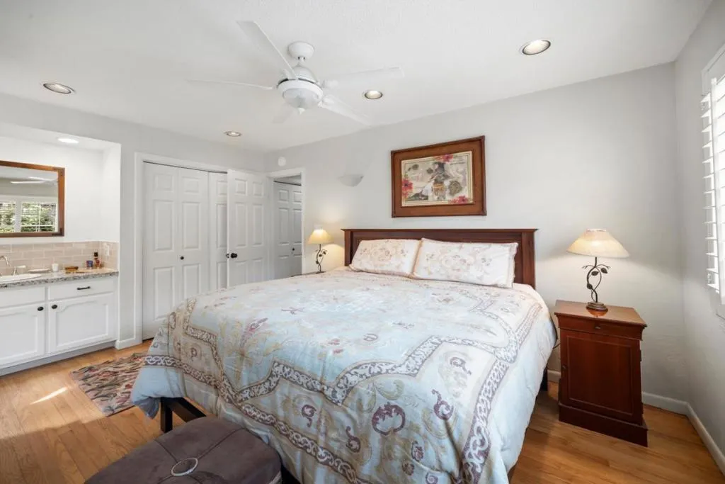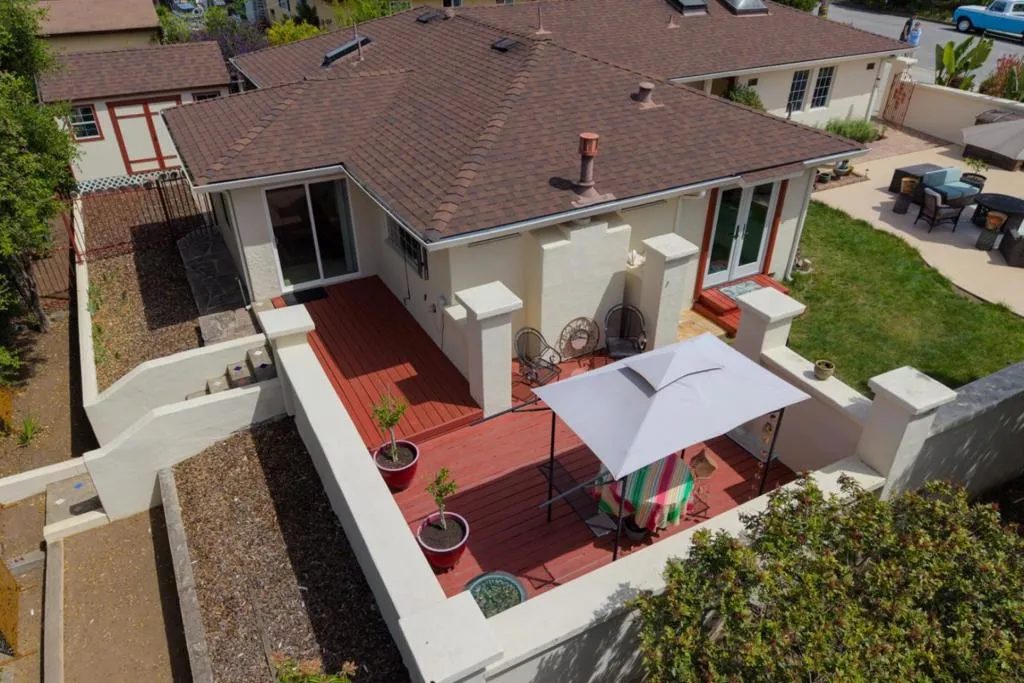 Tucked away on a quiet cul-de-sac in desirable Rolling Green Estates, this enchanting single-level California Mediterranean retreat delivers rare privacy and indoor-outdoor flow that feels worlds away - yet minutes to everything. Behind a stylish privacy wall, a generous sun-drenched courtyard and wraparound deck become an extension of the home itself: an inviting alfresco sanctuary for morning coffee, family play, or evening gatherings. Inside, the open, airy layout shines with thoughtful updates: a remodeled kitchen featuring granite counters, tile backsplash, new sink and oven; an updated bath with granite and LVP flooring; plus hardwood floors, plantation shutters, fresh paint, and carpet. 2-car garage, bonus shed and extra driveway for boat or trailer. Nearby Aptos Village, New Leaf Market, and Nisene Marks State Park for hiking and biking adventures in the redwoods. Homes blending this level of privacy, character, single-level ease, and unbeatable location are rarely available.