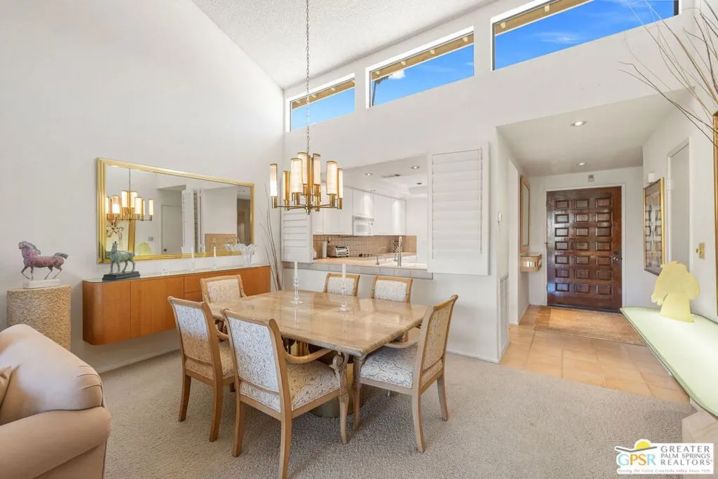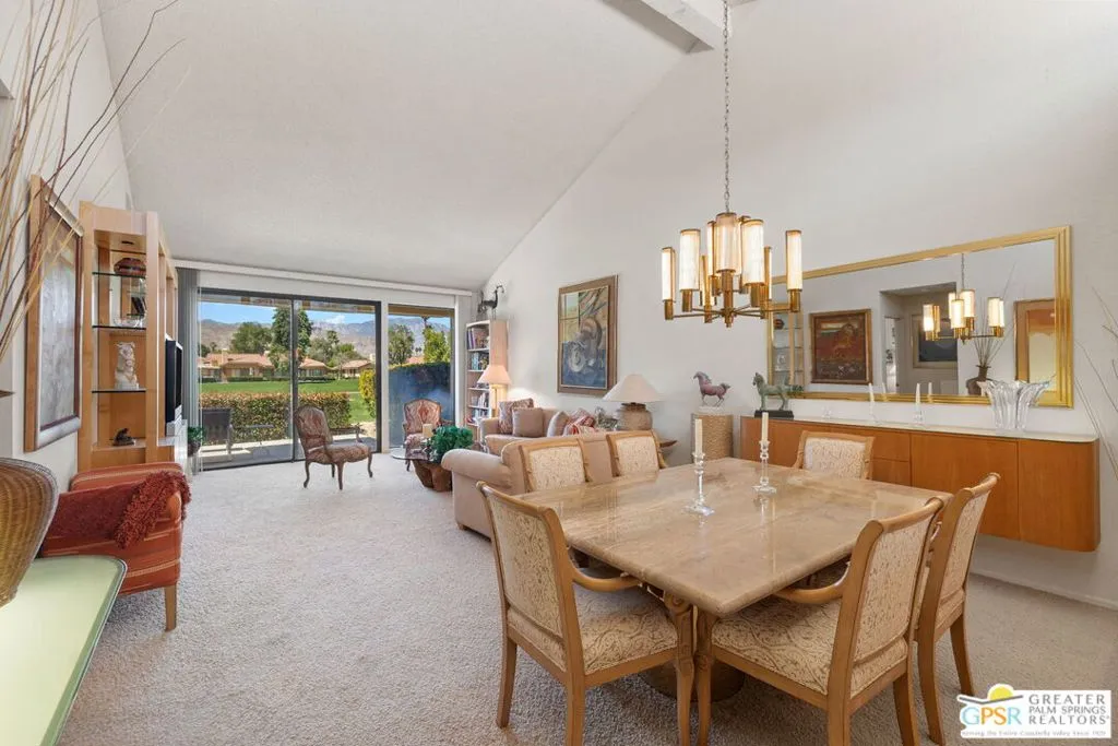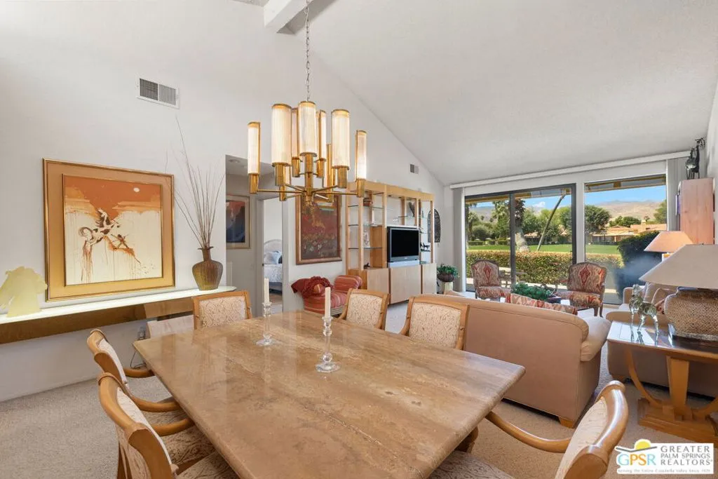 Fabulous Panoramic Mountain Views! Beautifully furnished 2-bedroom, 2-bath condominium filled with light and style. Designer finishes and tasteful furnishings create a warm, elegant feel throughout. The open-concept kitchen, living, and dining areas feature clerestory windows that flood the home with natural light while showcasing spectacular west-facing views of the San Jacinto Mountains and the golf course. Located in the highly desirable Monterey Country Club, residents enjoy 27 holes of championship golf, 37 pools and spas, and numerous tennis and pickleball courts, fitness center, bocce ball courts, and a Clubhouse with fine dining set among beautifully maintained grounds. The condominium offers an opportunity for updating, making this a wonderful chance to add your own personal touches. Perfect as a vacation retreat or full-time home in sunny Palm Desert. Own your piece of Paradise today!