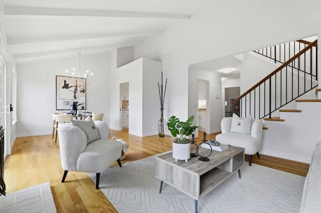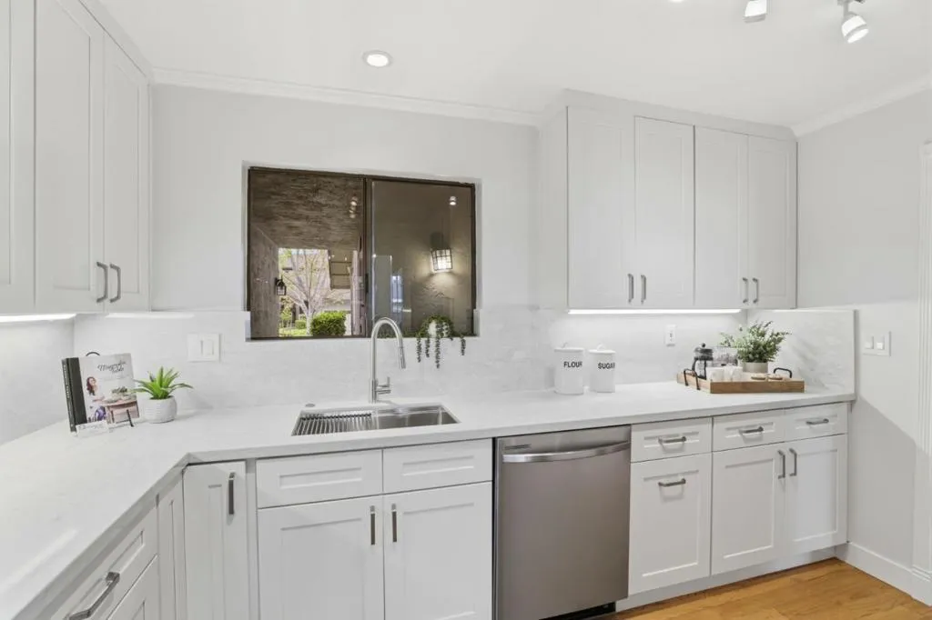 Open House This Saturday 1 4pm & Sun 1:30 - 4:30pm. Stunning, completely remodeled top to bottom townhome that feels like a single family home in the heart of Sunnyvale with top-rated Cupertino schools. This spacious 1,590 sqft home offers 3 bedrooms and 2.5 baths with vaulted ceilings and a bright, open layout. Move-in ready with fresh interior paint, refinished solid hardwood floors downstairs, and new carpet in the upstairs bedrooms and hallway. The remodeled kitchen features new shaker cabinetry, quartz countertops, and stainless-steel appliances including a gas range with hood, microwave, dishwasher, and refrigerator. The inviting living area is anchored by a cozy fireplace. One bedroom and a half bath are conveniently located on the main level. Upstairs, the expansive primary suite offers vaulted ceilings, walk-in closet, and an ensuite bath with double sinks and large shower. A spacious secondary bedroom and hallway full bath with tub shower combo complete the upper level. Enjoy a charming patio and landscaped yard perfect for a garden. Additional highlights include a large laundry room, designer lighting, central A/C, and a 2-car garage. Community pool and rec room. Prime location near Apple and other tech companies, shopping, and dining. Dont miss this one!