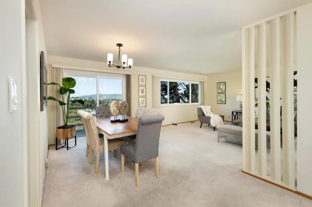 Spacious view home in Millbraes desirable Glenview Highlands with beautiful hillside and city views. Offering approximately 2,520 sq ft plus a large lower level, the home provides exceptional space, versatility, and an opportunity to personalize over time. The main level features a bright living and dining area, kitchen with breakfast nook, and a welcoming family room with fireplace opening to a large deck overlooking the peaceful setting. Upstairs includes a generous primary suite with walk-in closet, jetted tub, and private balcony, along with two additional bedrooms with scenic views. The expansive lower level offers a very large bonus area plus a separate room to be used as a fourth bedroom, recreation, office, guests, or additional living possibilities. Attached two-car garage. Conveniently located near downtown Millbrae, parks, schools, and with easy access to Highway 280.