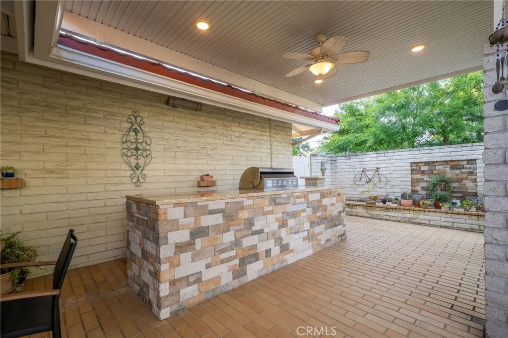 Beautifully Updated Single Story In The Heart Of Claremont. Located on a large corner lot in a tranquil, well-established neighborhood in central Claremont, this single-story home is set behind vibrant drought-tolerant landscaping, keeping water costs low and enhancing curb appeal. The custom leaded glass front door creates an impressive entry and brings natural light into the foyer. The layout is highly appealing, with plenty of natural light and beautiful wood flooring throughout most of the house. The spacious living room offers a raised-hearth fireplace, wood flooring, recessed lights, and double sliding glass doors with views of the backyard. The remodeled kitchen is open to the dining room and features generous cabinet space, stone counters, an attractive tile backsplash, breakfast counter seating, a gas range, dual ovens, and a built-in microwave. A convenient indoor laundry room is adjacent to the kitchen, with a basin sink, and leads to a convenient powder room. There are three spacious bedrooms, one of which is currently used as an office with built-in bookshelves and handy workspaces. The primary suite has a sliding glass door with direct access to the backyard. The two full bathrooms were beautifully renovated in 2024. The backyard is expansive, with multiple shaded patio areas, newer patio covers with built-in lights and fans, a built-in BBQ island, fruit trees, and plenty of space for future enhancements. A convenient breezeway leads from the house to the two-car garage with storage cabinets. On the west side of the lot, an expansive three-car driveway leads to the garage and also to a useful storage/utility area with the potential to be used as RV parking. Close to shopping, schools, and parks, this impressive home is highly attractive, versatile, and move-in ready!