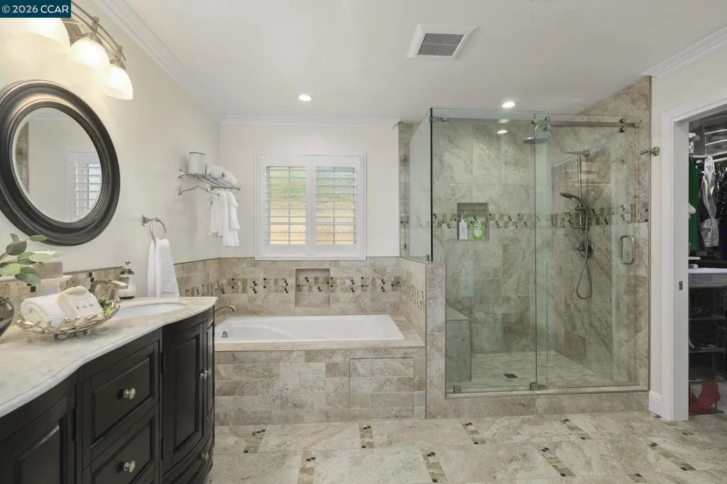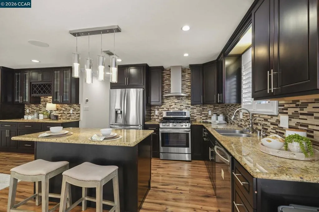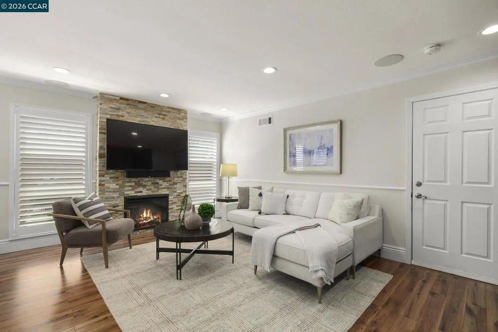 Stunning Single-Story in Valley Trails with over $300K in upgrades! Perfectly positioned on a peaceful court just steps from Valley Trails Park, this beautifully remodeled home blends elegance, comfort, and everyday convenience. Sunlight fills the open spaces through plantation shutters, highlighting hardwood-style floors, crown molding, and recessed lighting. The gourmet kitchen with granite countertops, stainless steel appliances, and a butler’s pantry flows seamlessly into the family room, which features wired surround sound speakers in the ceiling, an upgraded electric fireplace, and a slider to the backyard, creating the perfect setting for gatherings. The spacious primary suite offers a walk-in closet and spa-inspired bath with dual sinks, a Pure Air Jacuzzi tub, and a walk-in shower. Outdoors, enjoy stamped concrete, multiple patios, a freshly power-washed fence that looks brand new, built-in gazebo with lights and a ceiling fan — ideal for alfresco dining or relaxing under the stars. Peace of mind comes with an owned solar system, reinforced foundation, French drain, smart irrigation, owned alarm system and Ring doorbell. Award-winning Pleasanton schools are within a mile. No HOA. Open Sat 4/18 & Sun 4/19 from 1-4pm.