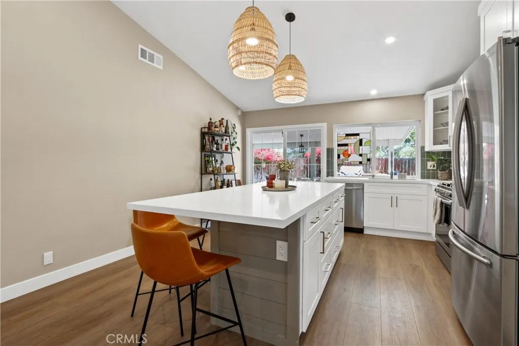 Beautiful 3 bedroom, 2 bath, 2 car garage, single family residence located in the wonderful city of Laguna Hills. It all starts as you walk in the front door, you will see the pride of home ownership. This beauty has been completely remodeled from top to bottom with New Luxury Vinyl throughout home, custom painting interior and exterior, all new base boards, new casings, dual pane windows, new toilets, shelf organizers, new blinds, brand new interior/exterior doors, ceiling fans, brand new kitchen with shaker cabinets, quarts counter tops, new undermount deep kitchen sink , back splash, stainless steel appliances, LED Ceiling lighting, large kitchen island and custom built garage cabinets and epoxy flooring in the garage. This model has a very bright and open floor plan with plenty of natural light. This property just has to many upgrades to mention. You must really see to really appreciate. The living/family room is very spacious with a cozy fireplace, 3 spacious bedrooms with a large master bedroom, brand new vanity and shower tub with upgraded backslash. Don't forget about the lovely back yard with a nice Built in BBQ and relaxing patio to enjoy those summer evenings with family and friends. You must bring your pickiest buyers. This property will not disappoint. Great location next to shopping centers, restaurants and shopping malls. Must see to really appreciate! HURRY THIS PROPERTY WONT LAST !