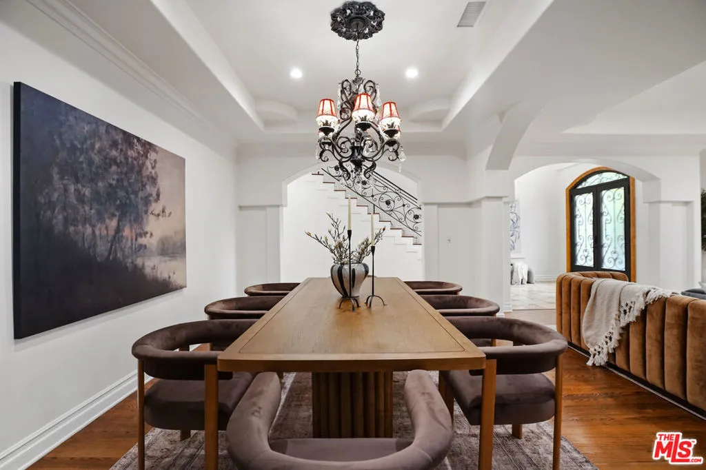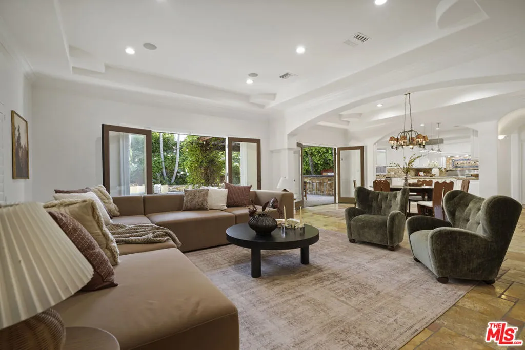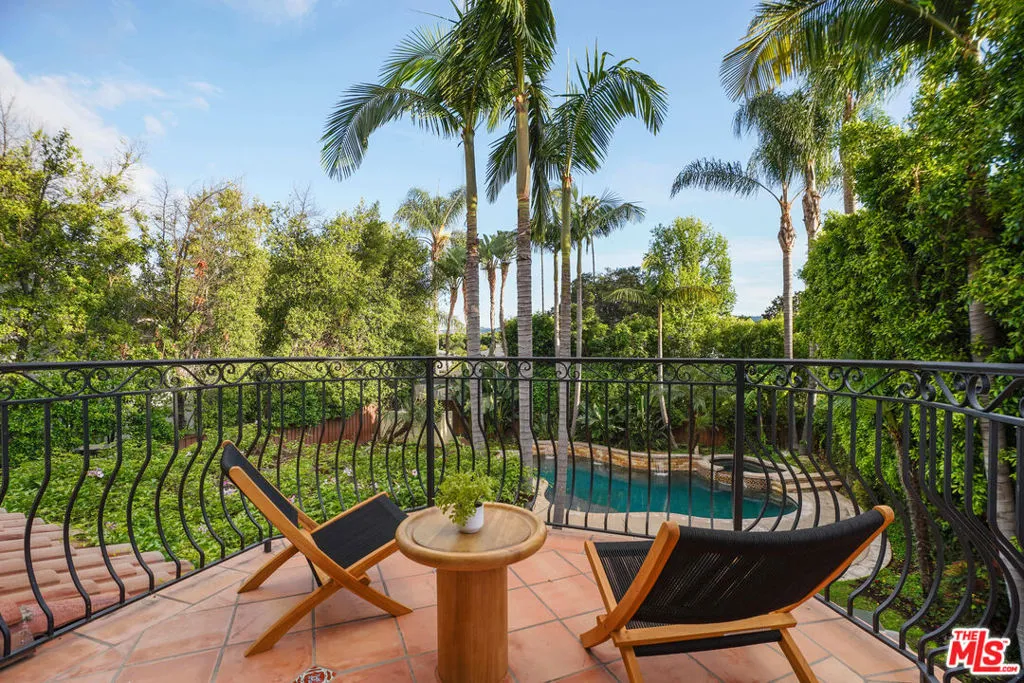 Welcome to La Buena Vida! A spectacular Spanish Mediterranean estate crowning a magnificent, acre lot in one of the Valley's premier destinations. The home resides in divine harmony with its organic, verdant environment of towering trees and sprawling lawns. The gated and hedged exterior with circular drive offers extraordinary curb appeal with a finely manicured fusion of floral and greenery. Inside, a grand entrance with soaring ceilings introduces a unique symmetry of old world elegance with modern world conveniences with styling distinctive and comfortable; romantic and refined. Exemplifying bespoke craftsmanship at every turn, rich, luxurious elements reference classic design with a flexible floorplan offering gracious transition from room to room. Rich wood and travertine flooring grace the living areas. Baths are dressed in fine tile, lighting and fixtures. Ideal for the entertaining, the expansive dining room lends itself ideally to both formal and informal gatherings of all sizes and occasions. Style, form and function unite in the epicurean kitchen, anchored by an Imperial professional grade range with three sinks, two dishwashers and center island. Glass atrium doors bring the outdoors in revealing an extraordinary, private oasis where an array of dining and lounging patios, full service outdoor kitchen and BBQ, fireplace, saltwater pool and spa with baja bench and flowing waterfalls, and sprawling lawn embody the coveted California lifestyle of endless al fresco leisure. The ideal venue for warm, relaxed poolside lounging by day, cool, intimate gatherings and lavish entertaining under the stars by night. Five bedrooms and bonus room with five baths including a lux primary suite with private patio round out the comfortable accommodations. Located in the Riverside Charter School District and just moments from the beloved Sherman Oaks Rec Center and Hazeltine Park, houses of worship and all the best of what acclaimed Sherman Oaks has to offer. Welcome!