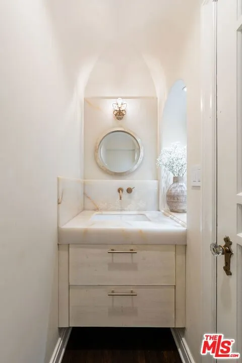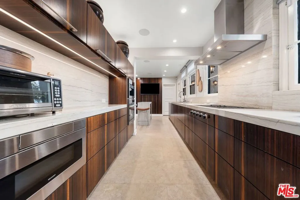 A rare opportunity to own a piece of Los Angeles history, this Spanish Revival residence in Hancock Park was originally designed by noted architect Donald Uhl. Blending timeless 1920s character with modern upgrades, the home has been reimagined to meet today's lifestyle while honoring its architectural roots. Step through the arched entryway and be greeted by original tile floors and a sweeping wrought-iron staircase, setting the tone for the craftsmanship found throughout. Natural light fills the formal dining room, which opens to a private courtyard featuring an outdoor fireplace and fountain, perfect for intimate gatherings. The gourmet kitchen is equipped with top-tier Miele appliances, including a wine fridge, steam combi oven, and built-in coffee system, making it both functional and stylish. A versatile den or office sits just off the entry, offering flexibility for work or relaxation. Upstairs, three spacious ensuite bedrooms provide comfort and privacy. The primary suite includes access to a private balcony, extending the living space outdoors. The grounds are beautifully landscaped with mature plantings, including camellias, coral trees, palms, and roses, all enhanced by thoughtfully designed exterior lighting. With a full home sound system, Wi-Fi integration, security, and CCTV, this residence seamlessly merges historic charm with the conveniences of contemporary living.
