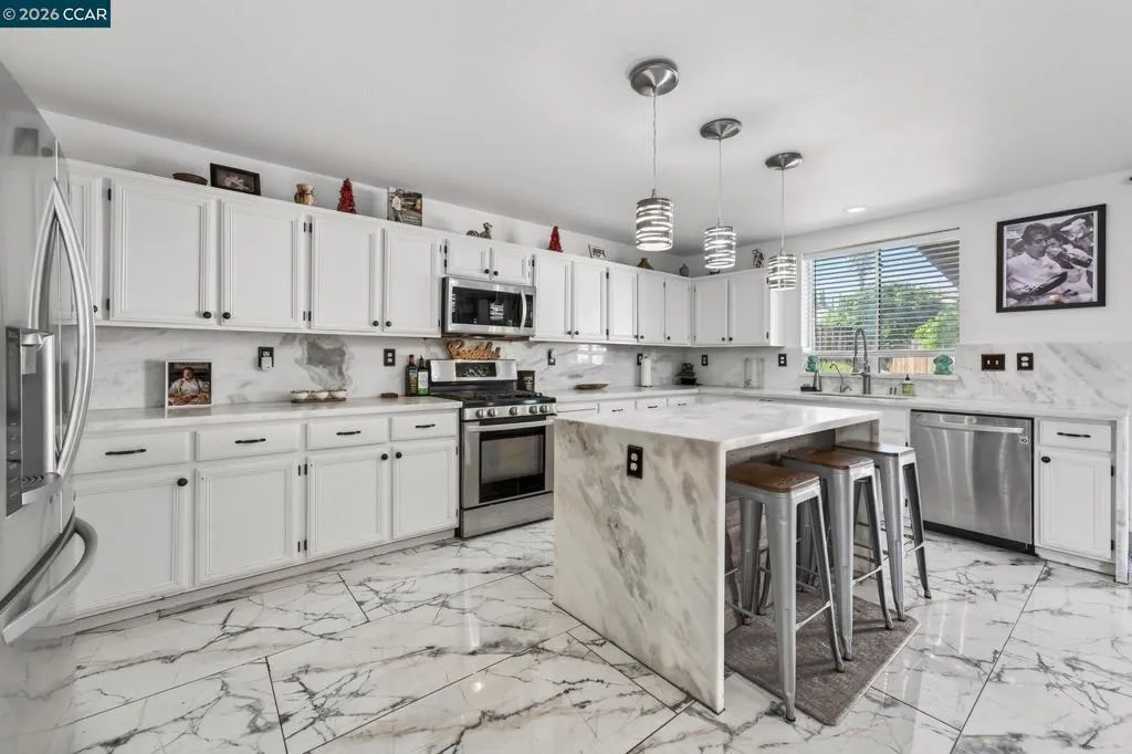 Beautiful two-story home located in a desirable Antioch neighborhood! This spacious property offers approximately 2,375 sq ft of living space with 4 bedrooms and multiple bathrooms, designed for comfortable living and entertaining. The home features an open floor plan with a beautifully updated kitchen showcasing quartz countertops, a large island, and ample cabinetry that flows seamlessly into the main living areas. Step outside to your own private backyard retreat featuring a sparkling pool and spa, perfect for relaxing or hosting gatherings. The backyard also includes mature fruit trees and plenty of space to enjoy outdoor living. A detached ADU/pool house provides additional flexibility for guests, extended family, or potential rental income. Additional highlights include paid-off solar for energy efficiency, RV parking, and spacious living areas. Conveniently located near parks, shopping, dining, and commuter routes, this property offers the perfect blend of comfort, versatility, and resort-style living.