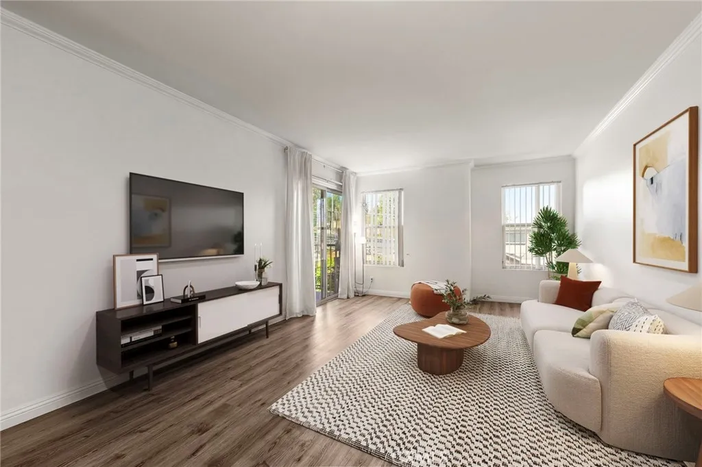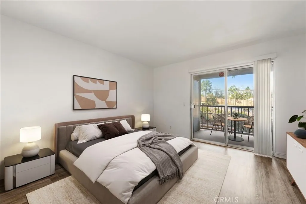 Welcome to this beautifully updated unit in the desirable Palms community of Long Beach. Featuring a spacious open floor plan and updated flooring throughout, this home offers both comfort and style The kitchen is filled with natural light and showcases crisp white cabinetry paired with sleek black granite countertops—perfect for both everyday living and entertaining. The bright and airy living room opens to a private balcony, creating a seamless indoor-outdoor flow and an ideal spot to relax The generously sized bedroom also offers direct access to the balcony, bringing in plenty of natural light. A full bathroom includes white cabinetry, dark countertops, and a convenient vanity area. You’ll also appreciate the massive closet, providing ample space for clothing and storage. For added convenience, a washer and dryer are neatly housed in a cabinet on the patio. The unit also includes one shared enclosed garage space and one assigned parking space Residents of the Palms community enjoy access to resort-style amenities, including a pool, spa, and outdoor dining area - perfect for enjoying the Southern California lifestyle. Community is FHA and VA approved!!