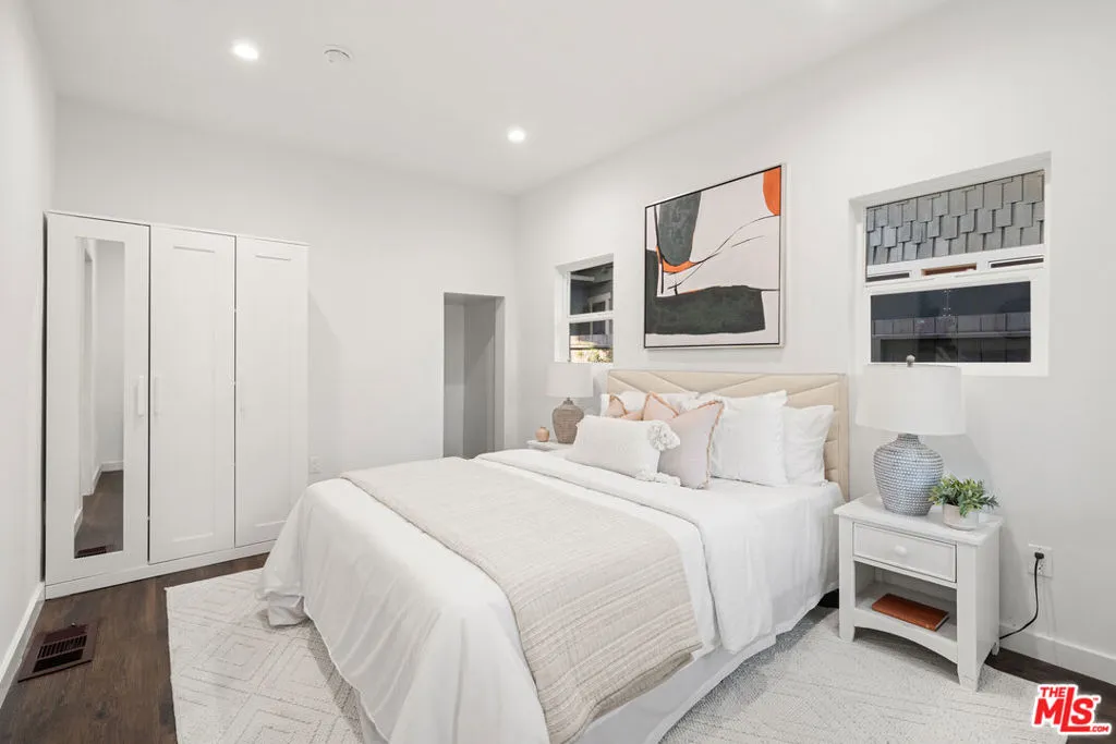 Welcome to a beautifully reimagined residence that seamlessly blends timeless 1913 Craftsman character with a full modern transformation in the heart of Mid-City.From the moment you arrive, the inviting large front porch and classic Craftsman curb appeal set the tone for a home filled with warmth, charm, and elevated style. Inside, the home unfolds into a light and bright open floor plan designed for effortless modern living, where natural flow and thoughtful design take center stage. The heart of the home is the stunning open-concept kitchen, featuring shaker-style cabinetry, gleaming quartz countertops, a large center island, and abundant cabinet storage. Designed with both beauty and function in mind, this space is perfect for everyday living as well as entertaining. Durable wood-look laminate flooring runs throughout the home, complemented by recessed lighting that enhances the clean, contemporary aesthetic. French doors off the dining area create a seamless connection to the outdoors, enhancing the California coastal feel and inviting natural light throughout the main living spaces. A convenient powder room is located on the main level, while the desirable layout places the primary suite downstairs for comfort and privacy. Upstairs, two additional bedrooms and a well-appointed bathroom provide flexible space for family, guests, or work-from-home needs. The expansive backyard offers a rare combination of usable outdoor space with lush grass and decomposed granite, ideal for relaxing, entertaining, or future customization. Completing the property is an oversized detached two-car garage, presenting exceptional potential for an ADU conversion or additional income opportunity. Modern comfort is assured with central HVAC, while the central Mid-City location places you moments from the best of Los Angeles living, dining, shopping, and major transit routes. This is more than a home. It is a rare opportunity to own a thoughtfully curated blend of historic charm, modern luxury, and future potential in one of LA's most dynamic neighborhoods.
