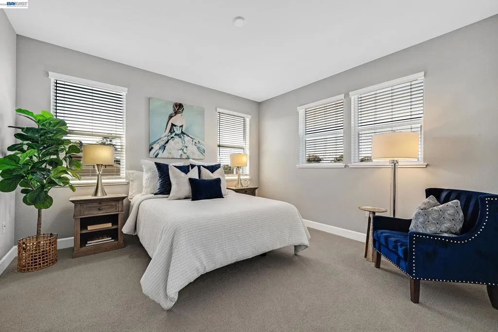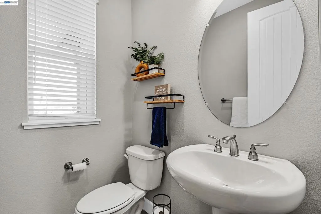 Built in 2023, this beautiful ,north-facing home combines modern style, energy efficiency and a light-filled, open floorplan. Interior highlights include luxury vinyl plank flooring, 9’ ceilings, vertical plank panel 8’ doors, accent LED lighting, satin nickel hardware and wood-stained cabinetry throughout. A striking 2-sided gas fireplace between the dining and family room and recessed tray ceilings add architectural appeal. The main level features a full bed/bath, half bath, kitchen, dining area, family room and laundry. The second story presents a spacious bonus room, expansive primary suite, 3 additional bedrooms and 2 additional baths including a jack-and-jill. Bathrooms offer quartz counters, easy-clean shower walls and humidity-sensing fans. The kitchen showcases quartz counters, accent tile backsplash, island with bar seating, stainless steel sink, wall oven, microwave, fridge and 36-inch 5-burner gas cooktop, plus walk-in pantry and under-cabinet lighting. Energy-efficient upgrades impress with owned solar, electric heat pump water heater, EV-ready garage, WiFi garage opener and cool roof system. The premium lot offers a covered patio and room for a future backyard oasis and pool. Just down the street is Rosalina Park. EZ access to Hwy 4, shopping and downtown Oakley.