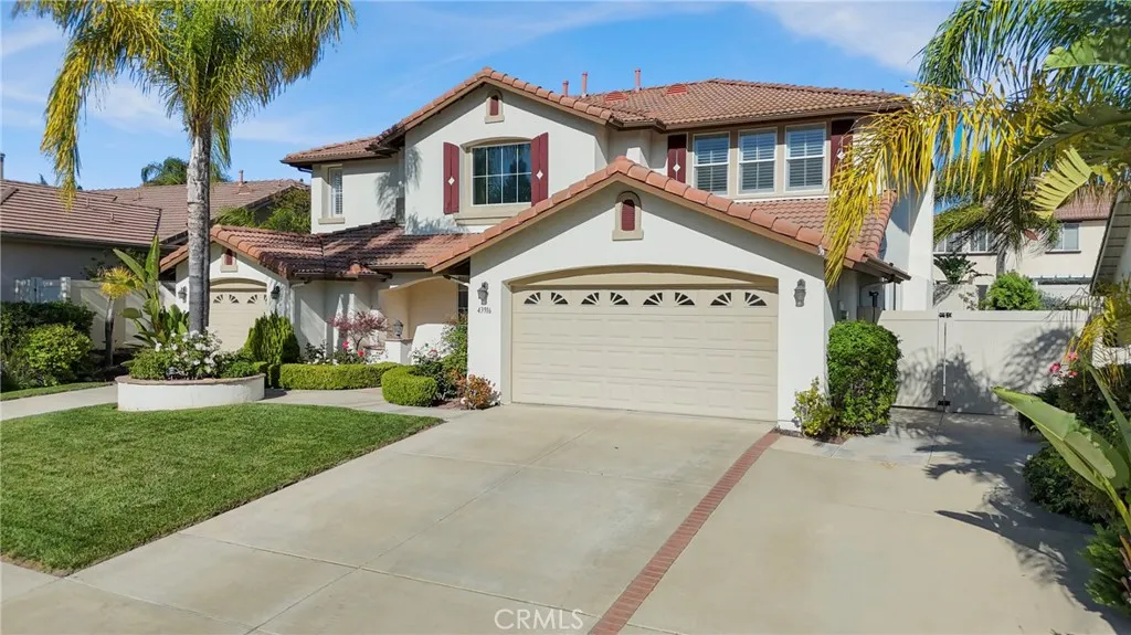 Paseo Del Sol POOL & SPA home with gorgeous curb appeal! This home welcomes you with a huge grand entrance with vaulted ceilings and a stunning medallion tile inlay. This 5-Bedroom, 3-Bathroom residence offer an exceptional blend of sophisticated and tranquil living. The expansive 3,432 sqft floor plan with grand formal spaces and a gourmet kitchen with granite countertops and new ovens that flows into the inviting family room with a cozy brick fireplace. A rare downstairs bedroom and full bathroom downstairs that is perfect for guests or an office. Thoughtfully designed floor plan with the primary suite privately situated on one side of the home, while three secondary bedrooms are located on the opposite wing - providing ideal separation and privacy for family or guests. The spacious primary features a private retreat just off the bedroom perfect for a cozy sitting area, home office, reading nook, nursery, or personal fitness space. This versatile bonus area offers the ideal place to unwind and enjoy a quiet escape within your own suite. This home also stands out for its high-value mechanical updates, including a newer water heater, a newer sprinkler controller and manifold for the lush grounds, and a newer pool pump to service the private backyard oasis. Step outside to find a paradise for entertaining, complete with a sparkling pool and heated spa, a built-in barbecue island, and a full patio cover. Additional highlights include ceiling fans throughout, a 3-car garage with dual driveways, and access to the highly desirable Paseo Del Sol community amenities including pools, spas, clubhouses, exercise rooms, sports courts, and parks. All of this in the heart of Temecula where you are just minutes from shopping, restaurants, award-winning schools, Wine Country, and much more! A home that is truly a must-see!