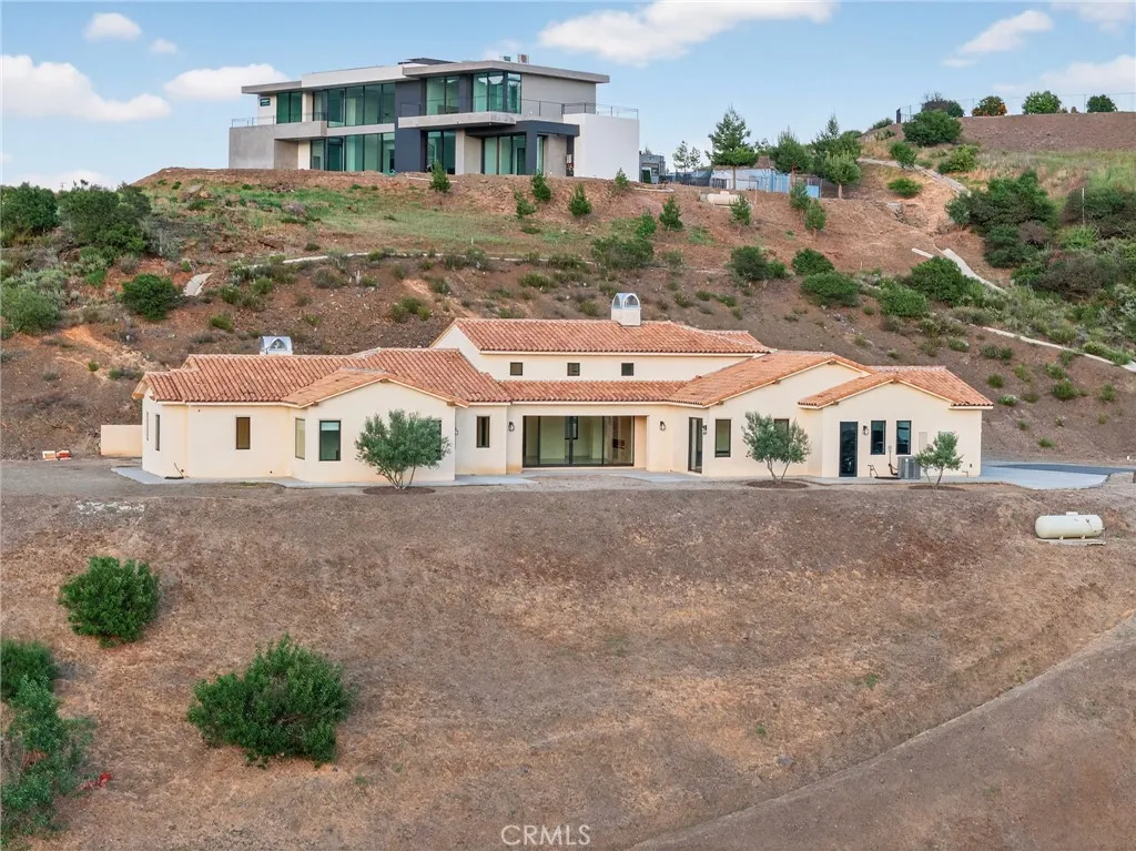 Absolutely Stunning Modern Architecture! This Timeless Beauty is Perched above De Luz Road, with breathtaking panoramic views from nearly every room and outdoor space. High-End Features Include Leicht Custom Kitchen, Three Heat & Glo Linear Fireplaces, 10 Foot Ceilings Throughout and 17 Foot Ceilings in Foyer and Gathering Room, Surround Sound Entertainment System with 75"Sony OLED with Apple TV in Family Room, Statuario Italian Porcelain in Kitchen and Baths, 30x30 Italian Tile Throughout, Glass Enclosed Wine Cellar, Miele M Touch Appliances, Miele Six Burner Gas Stove with Electric Oven, Dishwasher, Steam Oven and Espresso/Coffee, Light Touch Built-in Refrigerator/Freezer, Axor "Shower Heaven" in Primary Suite, California Closets Vertuoso Collection, Axor Faucets, Duravit Sinks and Wall Hung Toilets Throughout (In-wall units by Toto), All Interior Wall Insulated for energy efficiency and noise reduction, 2x6 Construction exterior and interior walls, Large Capacity Maytag Washer and Dryer, Two Navian Tankless Water Heaters, Two Seer 17 Cooling Systems with EcoBee Smart Thermostats, Outdoor Security Cameras, Fire Suppression System and So Much More! Situated on over 8 acres with endless potential—room for a pool, guest house, or additional structures. Covered patio with fireplace offers flexible use and could be converted to additional living space, 4 bedroom or office. Located just minutes from Old Town Temecula, Temecula Wine Country, golf, shopping, dining, and top-rated schools.