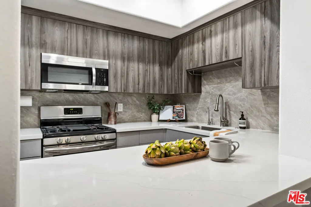 Bright and spacious, this beautiful 2-bedroom + den/office condo is ideally situated in the heart of Brentwood. The den/office is ideal for working from home, hosting guests, or creating an optional third-bedroom setup, while custom built-in shelves, ample storage, and an in-unit washer/dryer add everyday convenience. With high-ceilings, this single-level condo offers a fantastic open floor plan with a spacious family room, two primary suites with walk-in closets, and oversized windows that fill the home with natural light. The remodeled kitchen features stainless steel appliances and an easy flow for everyday living and entertaining. Enjoy an unbeatable Brentwood lifestyle - walking distance to the Brentwood Farmers' Market, popular shops, and restaurants, with the beach just a short drive away.