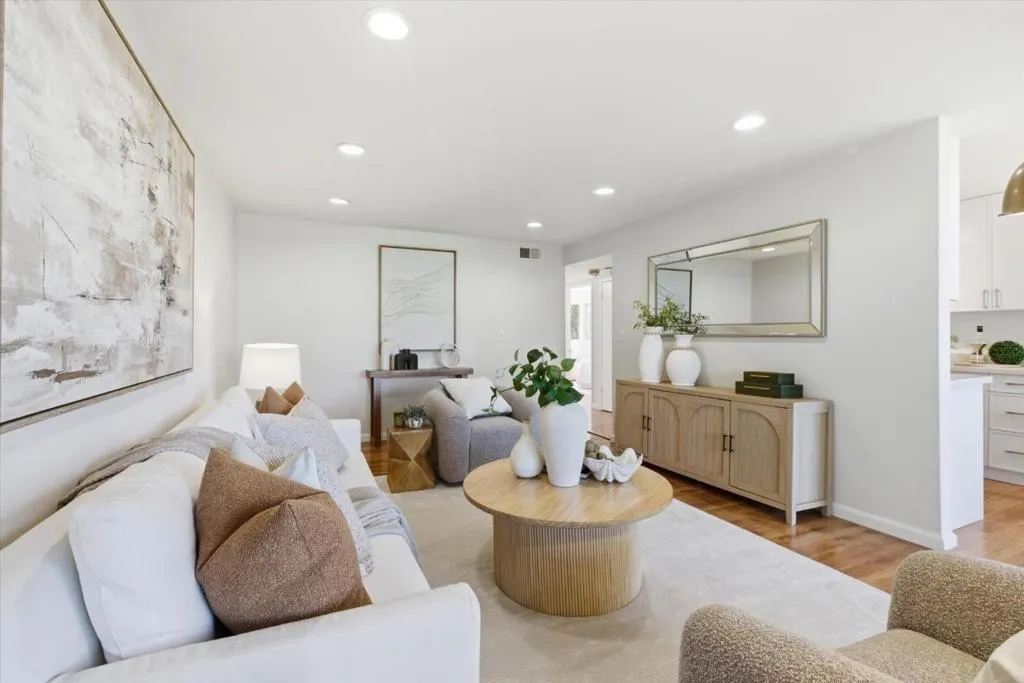 Tastefully remodeled first floor condo end unit in desirable Parkview West Condo complex with a peaceful view of the lush common area. New kitchen with ample Shaker style cabinets, quartz counters and stainless appliances. A separate dining area that overlook the mature landscaping and parklike setting. A large living room with recessed lighting, laminate wood floors and sliding glass doors to an expansive covered patio that overlook the common area. Generous size primary bedroom suite with a wall of closet space, shower stall and vanity. Spacious guest bedroom. Well appointed floorplan with laminate floors throughout and wonderful natural lighting. Well maintained complex complete with swimming pool and convenient to Rengstorff Park with a community center, tennis and pickleball courts. Additional large, private storage closet next to an assigned covered parking space. Prime location to shopping, schools, parks, freeway and expressway access. A truly well cared for home.