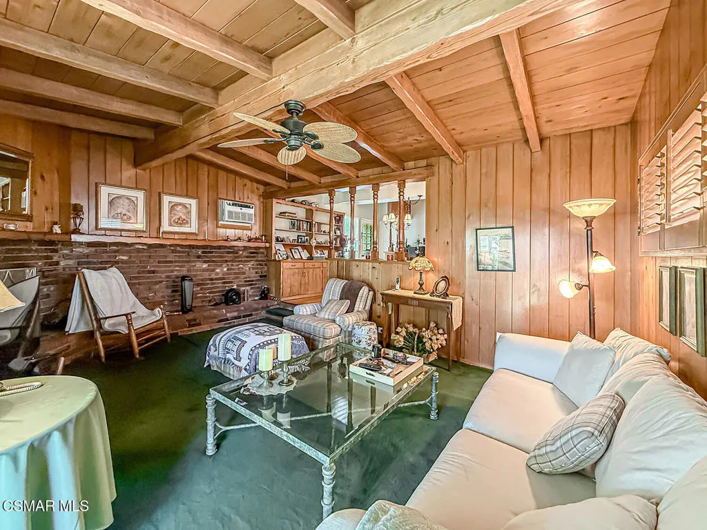 This truly special and one-of-a-kind property offers a rare opportunity to own a home that has been lovingly maintained and cherished for the past 46 years. From the moment you arrive, the inviting double-lane driveway welcomes you in, setting the stage for the warmth and character found throughout. Here is your change!Upon entry, you are greeted by a beautiful dining room with soaring, white-painted wood ceilings and an adjacent alcove идеально suited for a home office. The home's unique design showcases rich wood beams, wood ceilings, and wood siding, creating a peaceful, retreat-like atmosphere that feels removed from the everyday hustle--perfect for relaxing and unwinding. A stunning brick fireplace anchors the living space, providing the ideal setting for cozy evenings and meaningful gatheringsThe spacious kitchen offers ample room for cooking and entertaining, complete with stainless steel appliances including a range and refrigerator. The primary bedroom is a serene escape, featuring white wood plank ceilings and classic shutters, while the secondary bedroom includes dual walk-in closets, white ceilings, and a ceiling fan for added comfortThis is a rare chance to own a truly well-cared-for home filled with character, charm, and pride of ownership. With potential space for an ADU, the possibilities are there, yet the home itself stands beautifully on its own as a timeless and inviting residence ready for its next owner.