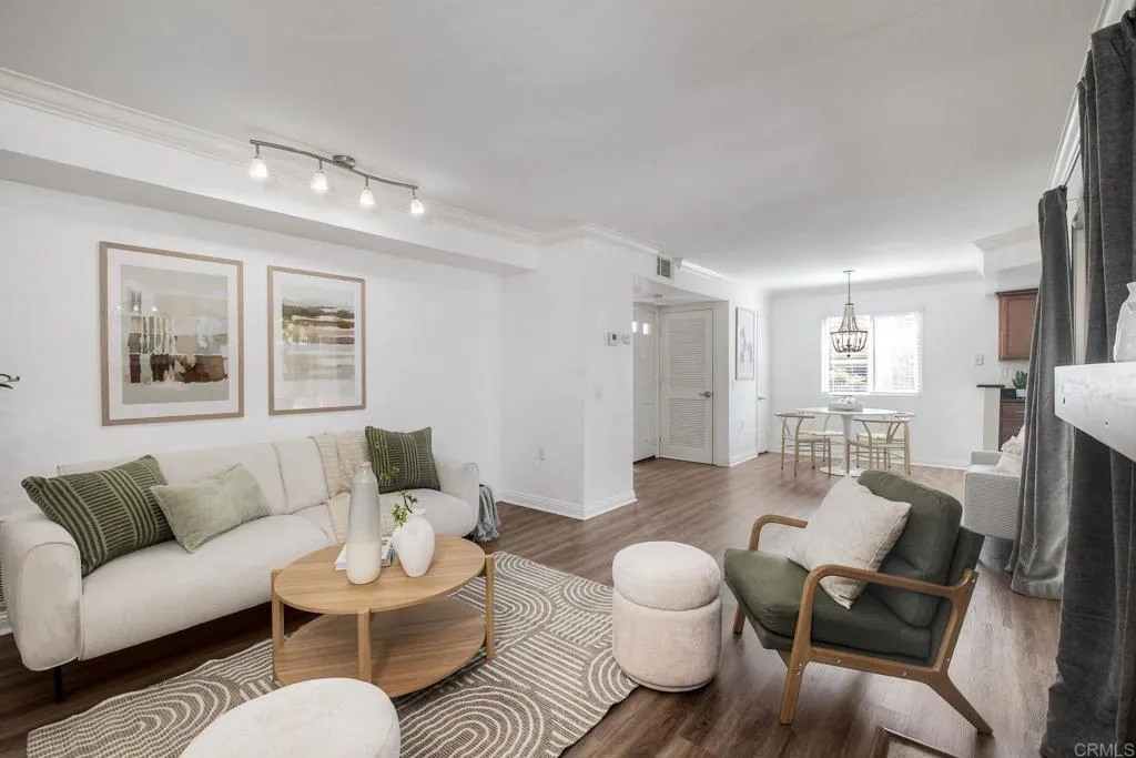 Don’t miss this exceptional opportunity to own a beautifully upgraded, ground-level corner unit in the community of The Bluffs. This turnkey home features a rare large, fully fenced private yard, perfect for relaxing, entertaining, or pets. Inside, you’ll find a bright and open floor plan enhanced by luxury vinyl plank flooring, crown molding, and abundant natural light. The kitchen is equipped with granite countertops and stainless steel appliances, seamlessly connecting to the living space for modern living. The spacious primary bedroom includes a walk-in closet, while additional highlights include: In-unit stackable washer & dryer, AC and ceiling fan, dual-pane windows for comfort and sound insulation. All appliances—including refrigerator, washer, and dryer—are included, making this home truly move-in ready. The community offers resort-style amenities, including: Pool and spa, Clubhouse with gym, kitchen, and meeting spaces, BBQ area, putting green, dog run and play areas. Ideally located near shopping, dining, parks, beaches, golf courses, major freeways, and public transportation. This home is perfect for first-time buyers, investors, or anyone looking to stop renting and start owning. Carport parking is close to the unit!! FHA and VA approved.