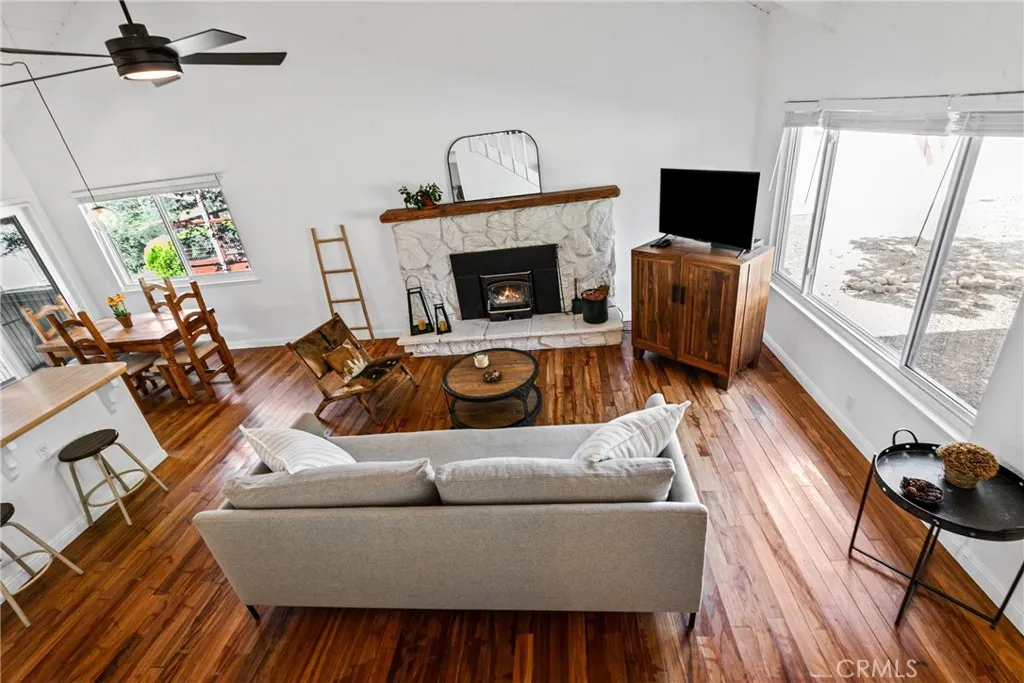 Set against a backdrop of open space, this Heritage Ranch home captures sweeping views of rolling, oak-studded hills and local wildlife, offering a sense of privacy and connection to nature that’s hard to find. Tucked away on a quiet cul-de-sac, this 3-bedroom, 2-bath home features an inviting open floor plan with vaulted ceilings, teak hardwood floors, and a spacious living area centered around a cozy wood-burning fireplace. The kitchen and dining area flow seamlessly together with a breakfast bar and newer stainless steel appliances. The main-level primary suite offers both convenience and comfort, complete with an en-suite bathroom and sliding glass door access to the outdoor deck. Upstairs, an additional bedroom and versatile loft open to below, providing flexible space for a home office, guest accommodations, game room, or second living area. Step outside to the covered deck and enjoy a drink at the bar top while taking in peaceful creek views and the natural beauty that surrounds the property. The fenced, low-maintenance yard further enhances the ease of living, featuring a patio for entertaining, olive trees, and a raised garden bed with a drip system. Additional features include a garage, carport, and owned SOLAR to reduce energy costs. Located within the gated community of Heritage Ranch, residents enjoy access to a wide range of amenities, including pools, tennis and pickleball courts, scenic trails, a dog park, equestrian facilities, and a private marina with lake access.