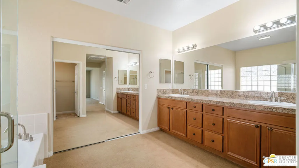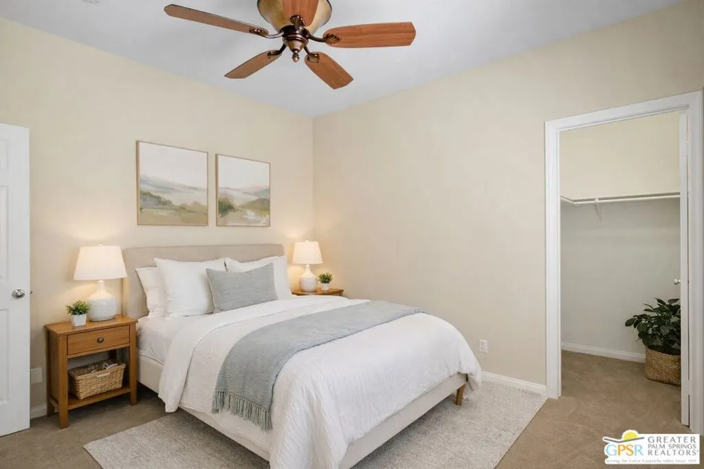 Spacious, well-designed, and filled with natural light, this Palm Springs home offers an expansive open-concept layout within the gated Mountain Gate community known for its low HOA, resort-style amenities, and convenient access to all that Palm Springs has to offer. Ideally situated toward the center of the community, this home enjoys a more private setting with added protection from exterior highway noise and wind, creating a quieter, more comfortable living environment. A private courtyard entry creates a welcoming sense of arrival, leading into a bright interior with high ceilings and generous living spaces. The main living area flows seamlessly into the kitchen and dining areas, creating an open environment ideal for both everyday living and entertaining. The kitchen features granite countertops, abundant cabinetry, stainless steel appliances, and a center island that connects effortlessly to the great room, complete with a fireplace and direct access to the backyard. The primary suite is privately situated and generously sized, offering direct outdoor access, a large walk-in closet, and an ensuite bath with dual vanities, soaking tub, and separate shower. Additional bedrooms are well-proportioned and thoughtfully separated, including an attached casita with its own access to the courtyard, perfect for guests, a home office, or flexible living. Step outside to a private backyard with mature landscaping, multiple seating areas, and scenic mountain views, creating a peaceful setting with room to relax or entertain. The courtyard offers an additional outdoor living space, ideal for morning coffee or evening gatherings. Mountain Gate residents enjoy access to multiple community pools and spas, tennis and basketball courts, greenbelts, and walking paths, along with a pet-friendly environment that includes a dedicated dog park, making it easy to enjoy an active desert lifestyle with your four-legged companions. With low monthly HOA dues and fee land ownership, the community offers exceptional value within a gated setting. Ideally located just minutes from downtown Palm Springs, shopping, dining, and easy freeway access, this home presents a rare combination of space, privacy, and lifestyle in one of the area's most desirable communities. Easy to show.