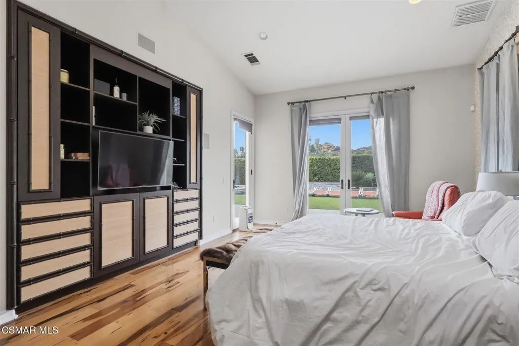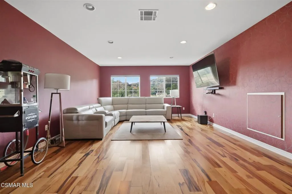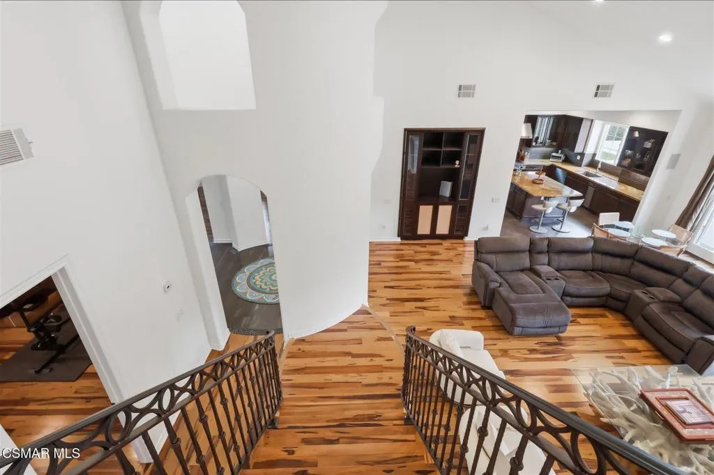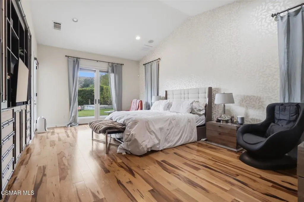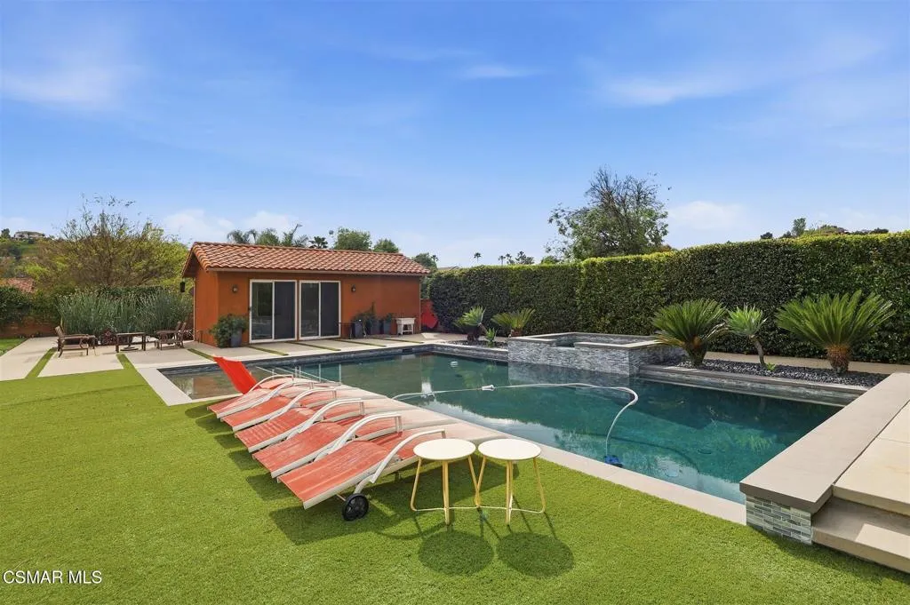 Set on a quiet cul-de-sac in Chatsworth, this exceptional property is designed for both everyday comfort and effortless entertaining, all framed by sweeping views of the Santa Susana Mountains and striking natural rock formations.The backyard feels like a private resort--featuring a pool with Baja shelf, spa, expansive lounging areas, a sports court, and multiple spaces to gather or unwind. A detached, open-concept casita with its own bath and closet offers flexibility for guests, work, or extended stays.Inside, the home welcomes you with a formal entry that opens to elegant living and dining spaces. The layout flows seamlessly into an oversized gourmet kitchen, thoughtfully connected by a butler's pantry and complemented by a generous walk-in pantry. The kitchen and adjoining family room overlook the backyard, creating a natural indoor-outdoor connection ideal for entertaining.The main level offers a spacious primary suite along with additional bedrooms and baths, while the upper level features private en-suite accommodations and a secondary living area--perfect for added comfort and separation of space.Additional highlights include dual garage configurations and a dedicated laundry room, all contributing to a home that balances functionality with refined living in one of Chatsworth's most desirable settings.