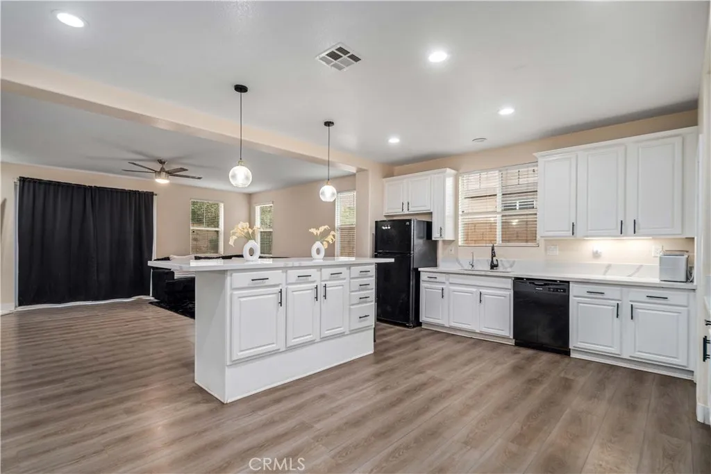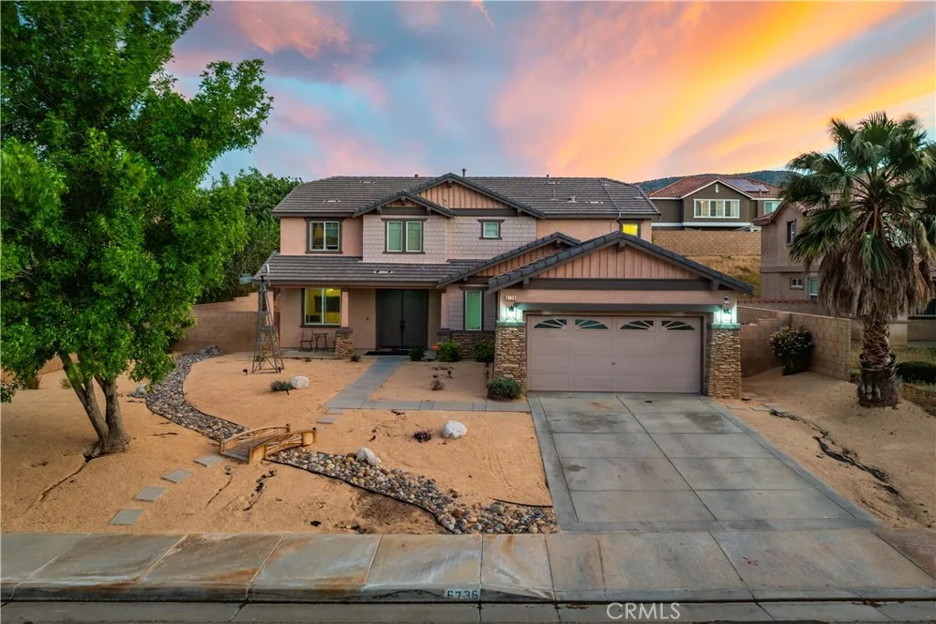 ***LIVE BEAUTIFULLY*** Stunning Two Story Palmdale Home with a Modern Upgraded Interior! Welcome to this beautifully upgraded residence that blends comfort and contemporary style. Enter through grand double doors into a striking foyer with cathedral ceilings and a chandelier that creates a memorable first impression. Recessed lighting and upgraded flooring carry throughout the home, leading into a spacious living area designed for both everyday living and entertaining. The kitchen features quartz countertops, white cabinetry, pendant lighting, bar seating, and a large center island, and opens seamlessly to the family room with a fireplace and a formal dining space. The main level also includes a bedroom and full bathroom, ideal for multi generational living or guests. Upstairs, a large loft offers flexible space for a media room, office, or play area and connects to the primary suite. The primary bathroom includes dual vanities, quartz countertops, a soaking tub, a glass walk in shower, and a walk in closet, while the secondary bathroom also features dual vanities for added convenience. The front yard showcases drought tolerant landscaping with decorative rock accents and a charming wooden bridge, and the expansive backyard provides plenty of room for entertaining, relaxing, or creating your ideal outdoor space. This home offers a thoughtful layout with modern upgrades and inviting spaces throughout. This Modern Upgraded Palmdale home is truly a must-see! Schedule your private tour today and experience this remarkable property for yourself!