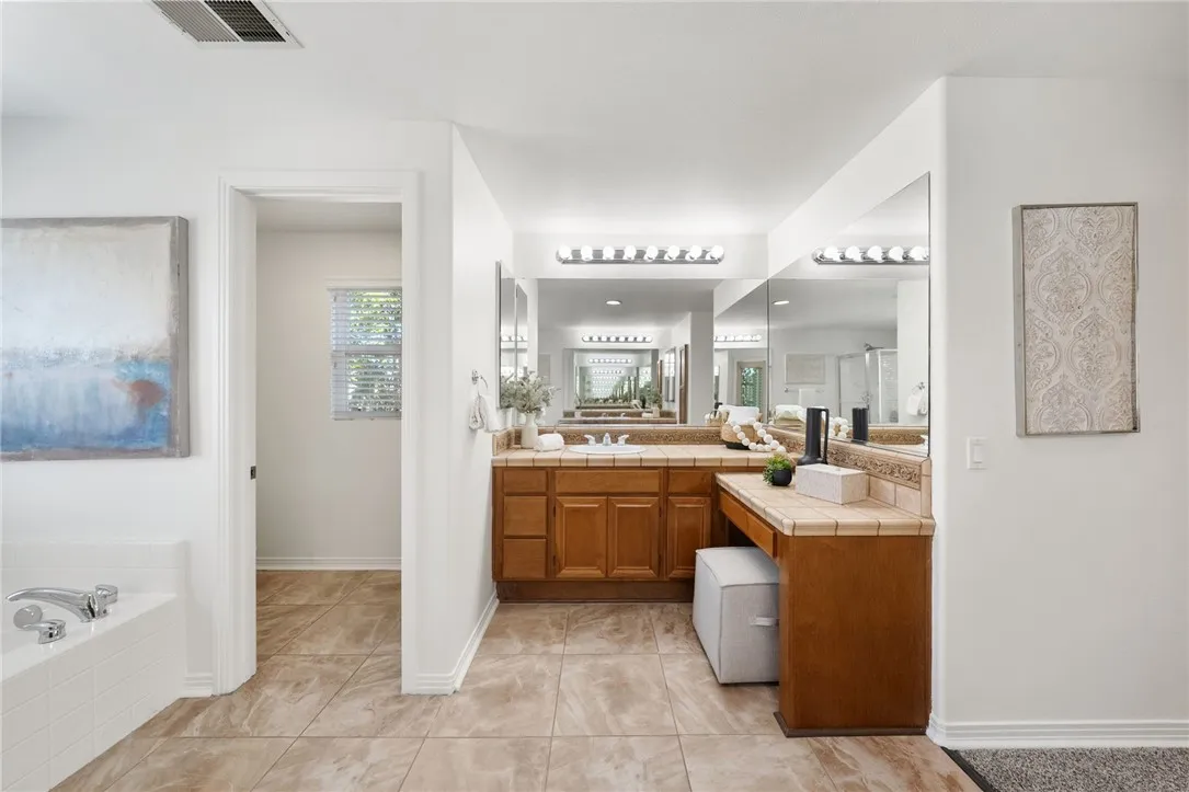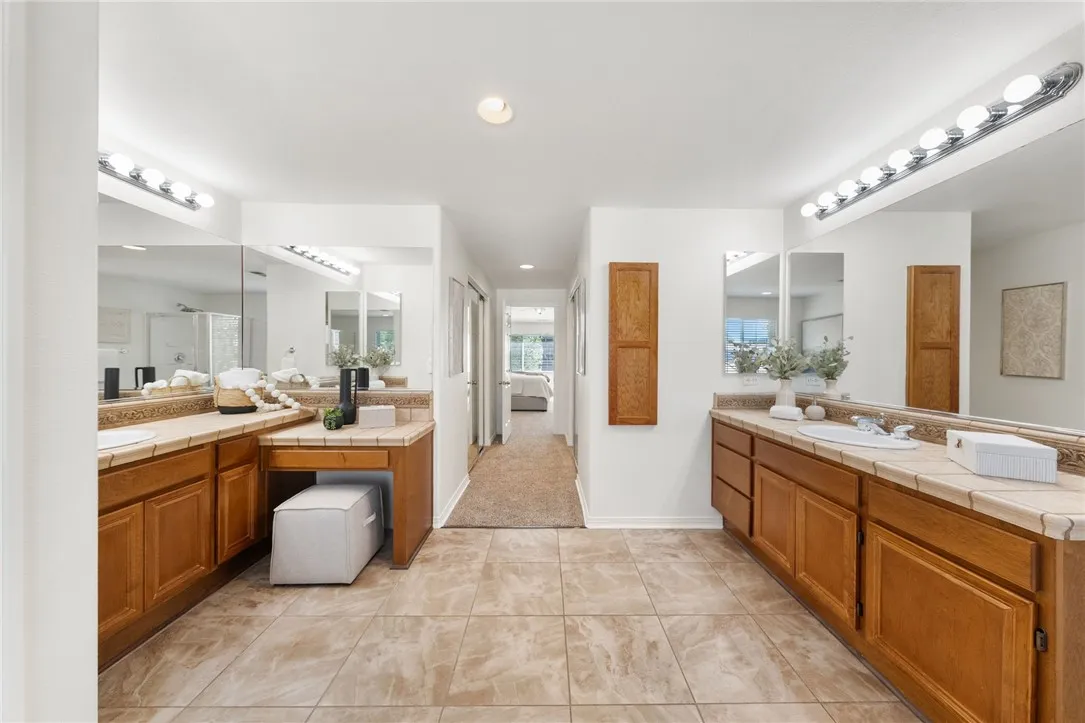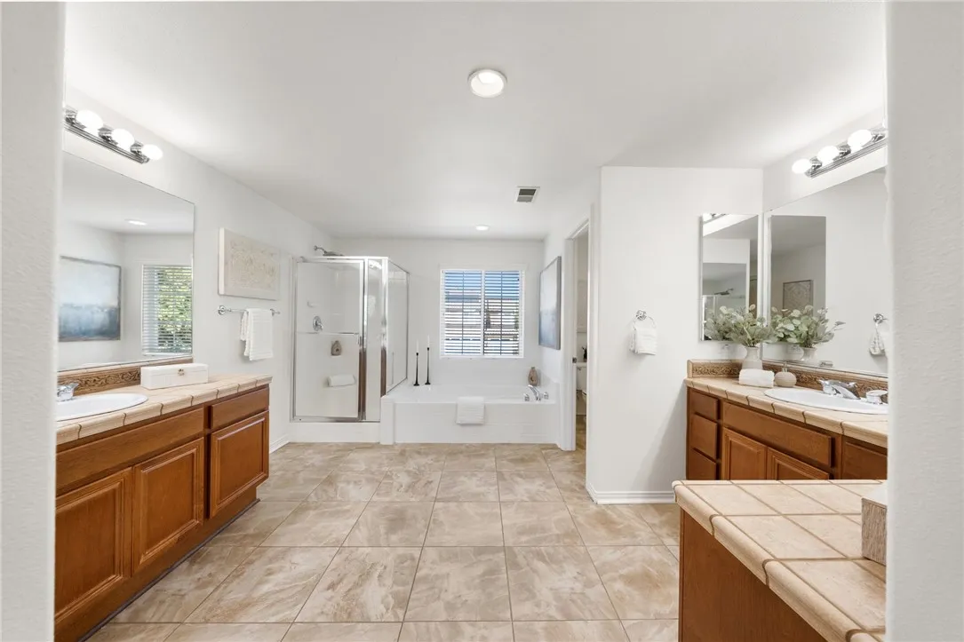 *GATED COMMUNITY in the HEART of MURRIETA* TURNKEY HOME * MAIN FLOOR BEDROOM Welcome to this beautifully updated home in the gated community of Big Tree, ideally located near Old Town Murrieta. With freshly painted exterior & charming curb appeal framed by mature cypress trees, this home invites you in from the moment you arrive. The quaint front porch is the perfect place to relax, watch the kids play on the expansive grassy area or enjoy the peaceful neighborhood setting. Step inside to a spacious, light filled layout featuring tile flooring & a freshly painted neutral interior throughout including walls, doors & baseboards. The living & dining rooms offer a welcoming space to gather & entertain, with direct access to the backyard for seamless indoor outdoor living. The kitchen is designed for everyday living & hosting alike, featuring maple cabinetry, a large eat in island, walk in pantry & an open flow to the family room. Here you’ll find brand new carpet, a cozy fireplace, ceiling fan & custom built in, all complemented by large windows overlooking the backyard. A main floor bedroom with mirrored wardrobes is conveniently located next to a full bath with tub shower combo, ideal for guests or multi generational living. The laundry room offers added functionality with ample cabinetry & a sink. Upstairs, brand new carpet extends throughout the entire second level. At the top of the stairs, a spacious bonus room(potential bedroom #6) with built ins & walk in closet creates endless possibilities for a home office, game room, or multi-genertational living, and is located next to a full bath. Three additional secondary bedrooms all with mirrored wardrobes are generously sized, while down the hall the private primary suite offers a true retreat with ceiling fan & a separate sitting area perfect for an office or quiet escape. The primary bath features dual sinks, a separate vanity, a soaking tub & walk in closets. The 3 car garage is a standout feature offering upgraded cabinets & a workbench, providing excellent storage & functionality. Step outside to a private backyard complete with a patio, alumawood patio cover, grassy area for kids & pets to play, and mature landscaping that creates a peaceful outdoor setting. Located in a quiet gated community just minutes from Old Town Murrieta, shopping, dining, easy 15 freeway access & within the highly sought after Murrieta school district.