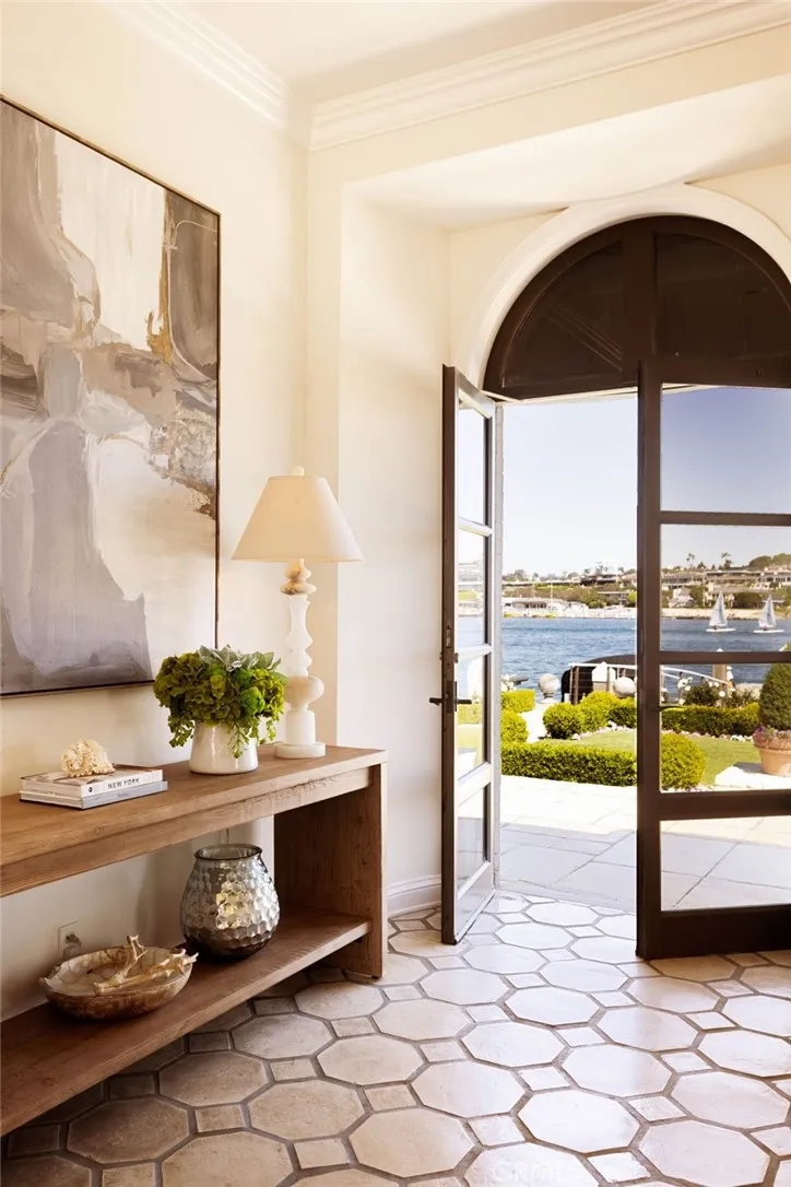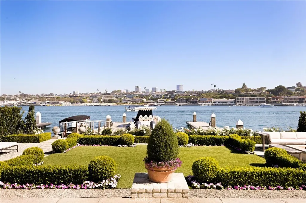Representing an increasingly rare opportunity along the shores of Newport Harbor in Newport Beach, this French-inspired Hollywood Regency bay front estate reflects a remarkable level of scale, presence, and architectural distinction — qualities seldom found in today’s coastal market. Set on an expansive 55' W, 10,752 SFT parcel, the home is thoughtfully positioned just beyond the neighboring residence to capture both expansive front-facing harbor views and sweeping corner vistas toward the harbor entrance and the sparkling lights of Corona del Mar. While visually compelling it is the rarity of the home’s defining qualities that truly set it apart. Opportunities that unite substantial lot width with premier dock capacity on Newport Harbor are exceptionally rare. The private dock, affording a yacht accommodation for an 85-foot craft and complemented by two side ties, delivers a configuration rarely found and ideal for those seeking the ultimate Newport Beach waterfront lifestyle with direct harbor access. A sense of arrival unfolds through lush, curated gardens and a tranquil interior courtyard, creating a private and serene transition into the home. Just beyond, a charming guest house positioned off the courtyard offers a welcoming retreat, complete with a separate living room anchored by an antique French limestone fireplace, lending ambience and character. Inside the main residence timeless European influence meets refined craftsmanship, where thoughtful detailing and custom finishes are evident throughout. The country French kitchen, grounded by antique brick herringbone floors, brings warmth and authenticity, while custom bronze windows and doors frame the interiors with understated elegance and natural light. Designed to embrace its extraordinary setting, the home’s grand-scale waterfront living spaces open seamlessly to lavender-infused gardens, terraces, and a generous grassy lawn at the water’s edge - an ideal backdrop for al fresco dining, entertaining, and enjoying life on the harbor. Whether hosting sunset gatherings or setting out from your dock for a day on the water, the connection between home and harbor feels seamless and fluid. With its irreplaceable location, architectural integrity, and rare combination of lot size and yacht accommodation, this offering stands apart as a true legacy bay front estate in Newport Beach -where scale, privacy, and lifestyle converge in a way that is unlikely to be replicated.
